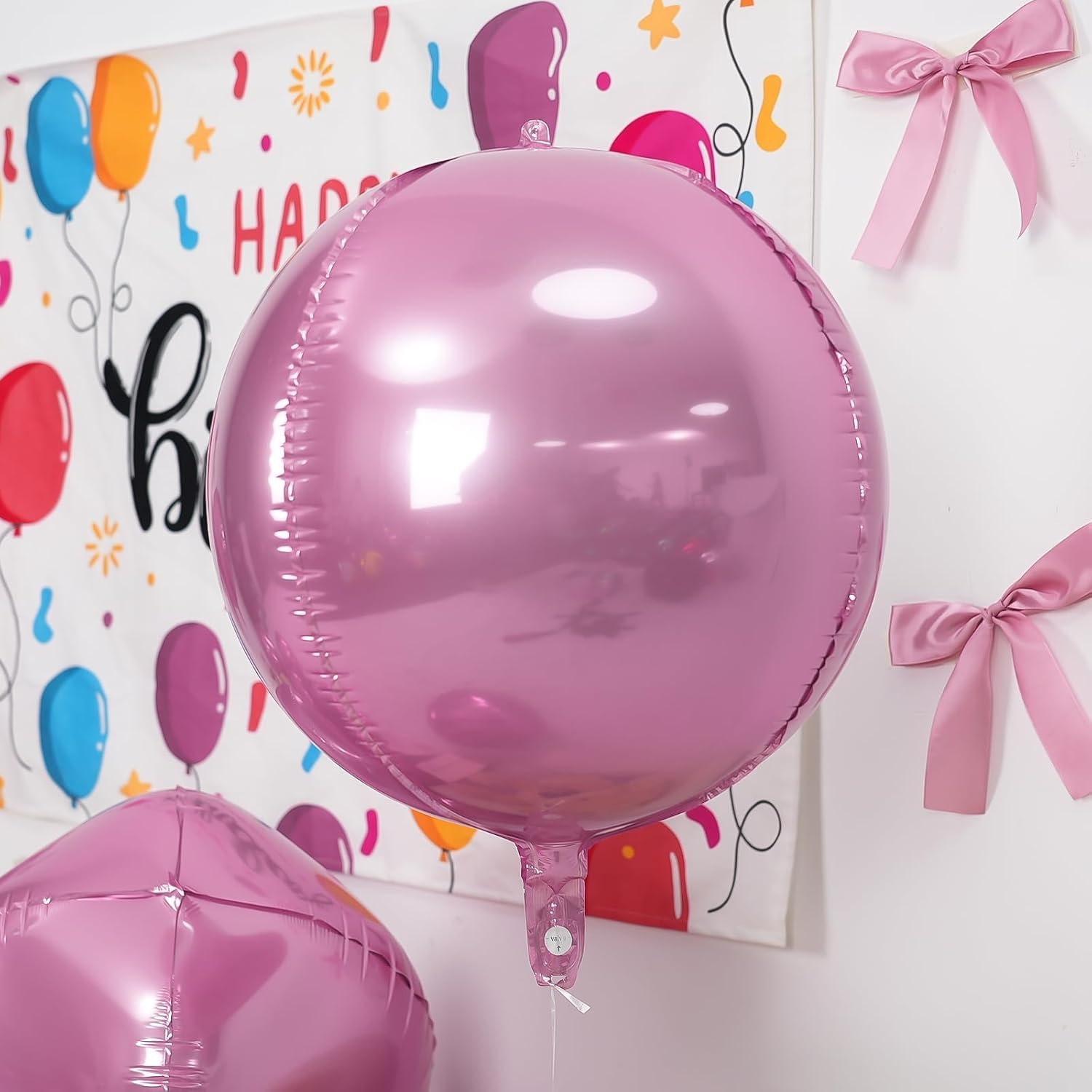 - Package: You will receive 12pcs 4D pink round foil balloon, 3pcs 22inch + 4pcs 15inch + 5pcs 10inch + 1 straw + 1 roll of ribbon. Different sizes balloons in can meet your party needs. 10inch mini size balloons do not support helium filling and floating. The classic solid pink chrome balloons are perfect for any pink-themed party.