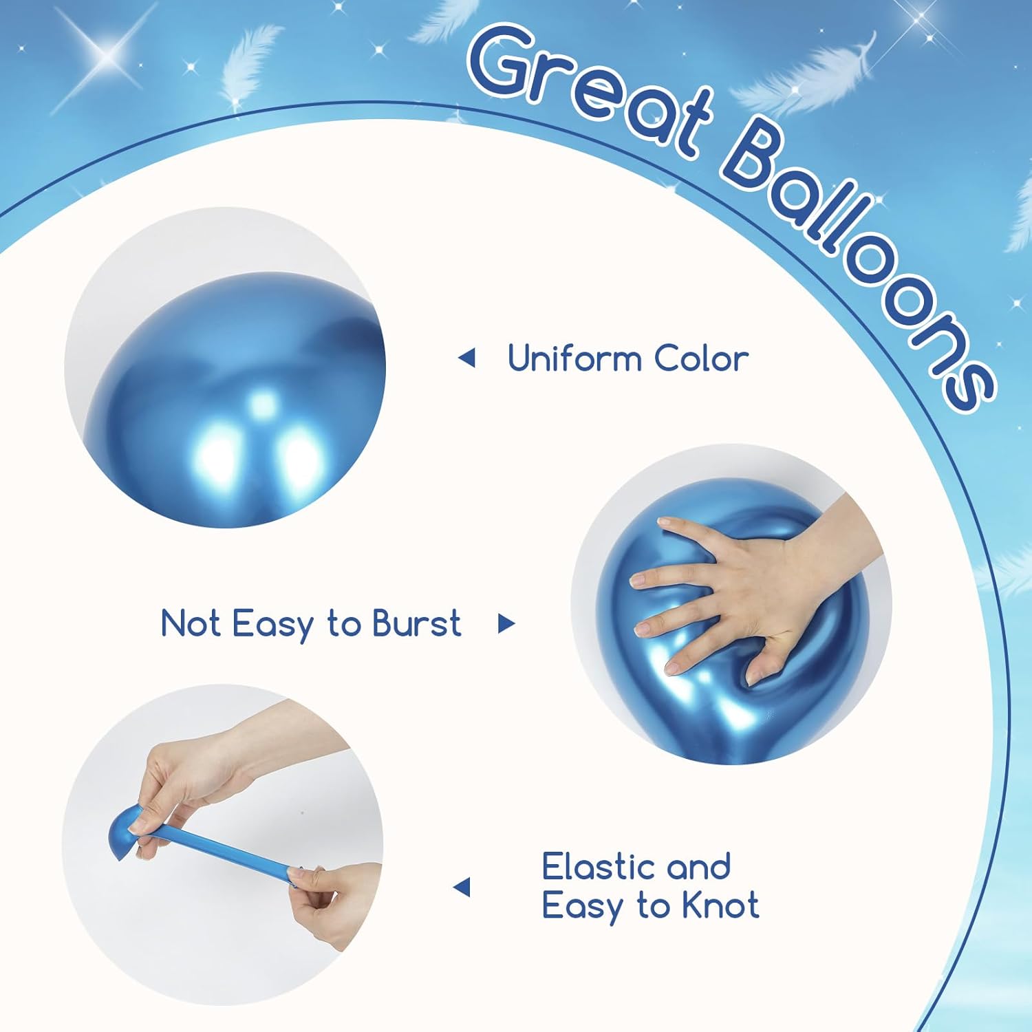 - What You Will Get: The package includes 12inch pearl blue balloonsx15, 12inch pastel blue balloonsx10, 12inch pearl light blue balloonsx10, 12inch white balloonsx15, 12inch blue confetti balloonsx10, glue dotsx20, blue ribbonx1