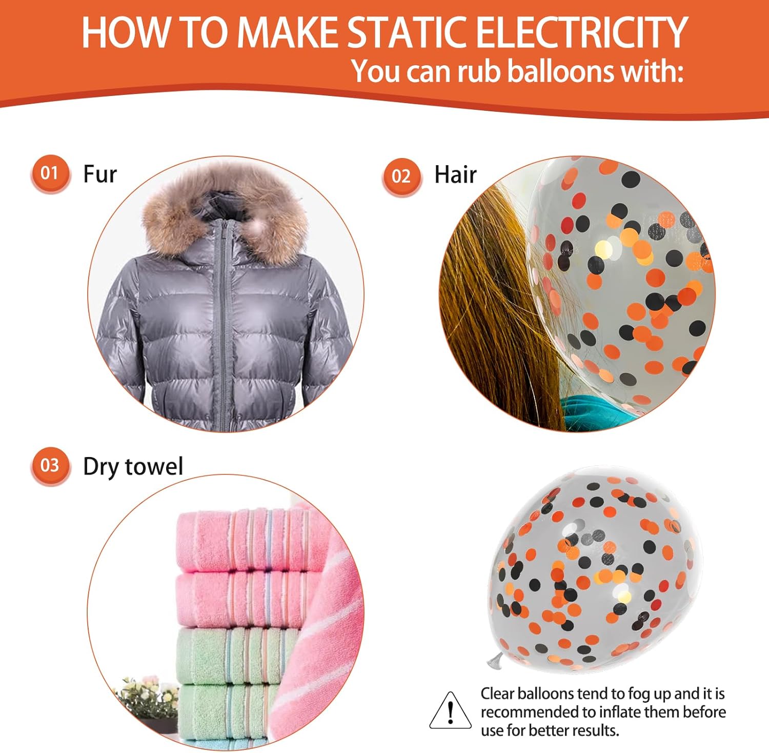 - 🎉【Complete 68-Piece Set】 – Includes 28 black balloons, 28 orange balloons, 12 confetti balloons, and 2 ribbons, offering a complete decorating solution for Halloween, graduation, birthdays, and themed parties.