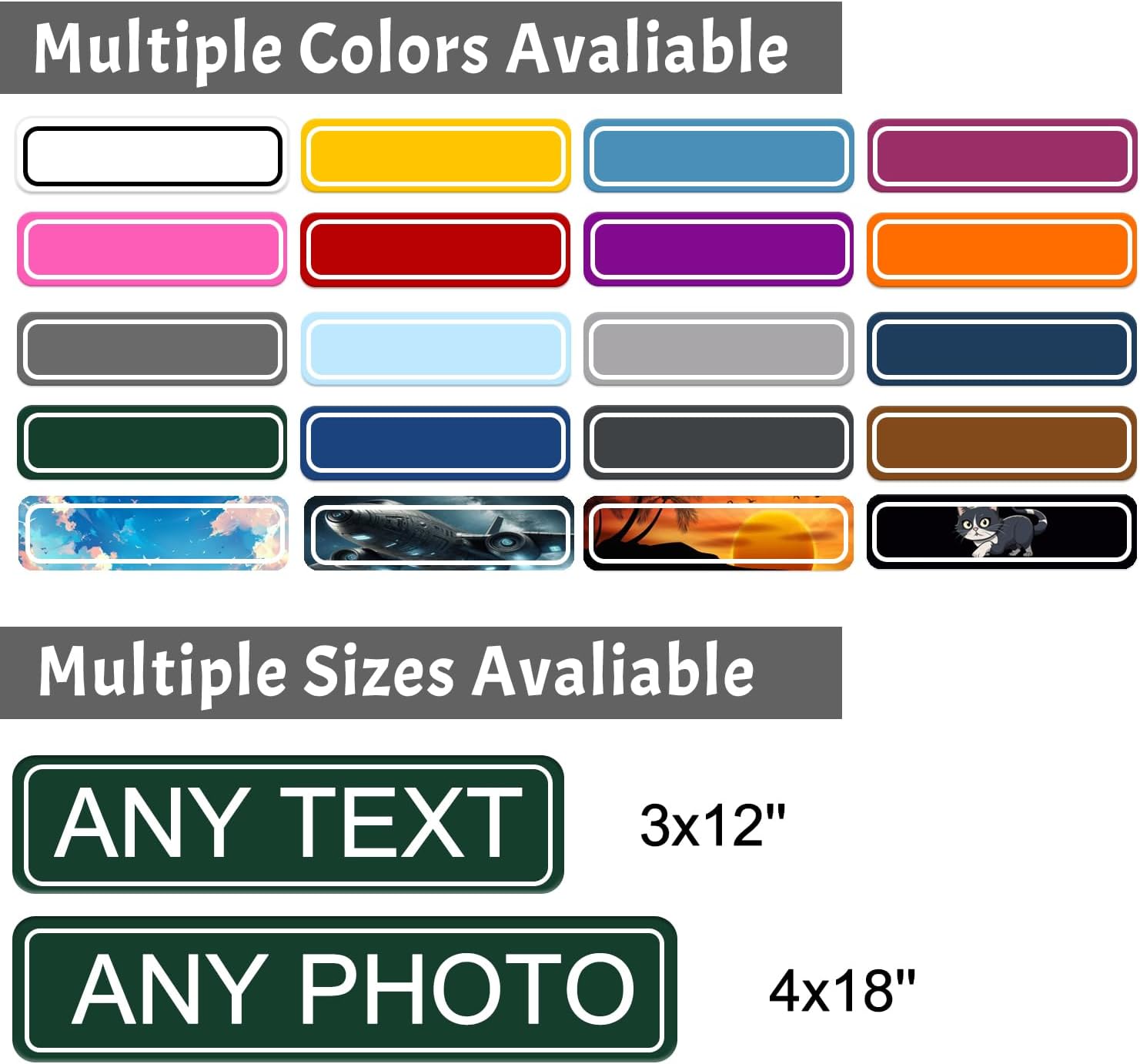 - Perfect Size: We have 4 different sizes to choose from: 3 × 12, 4 × 18, 10 × 14, 12 × 18 inches. Our custom logo comes with 4 drill holes that can be easily installed on every surface, including pole frames, windowsills, and other surfaces, without the need for adhesives or other special equipment. Of course, you can also choose not to drill holes.