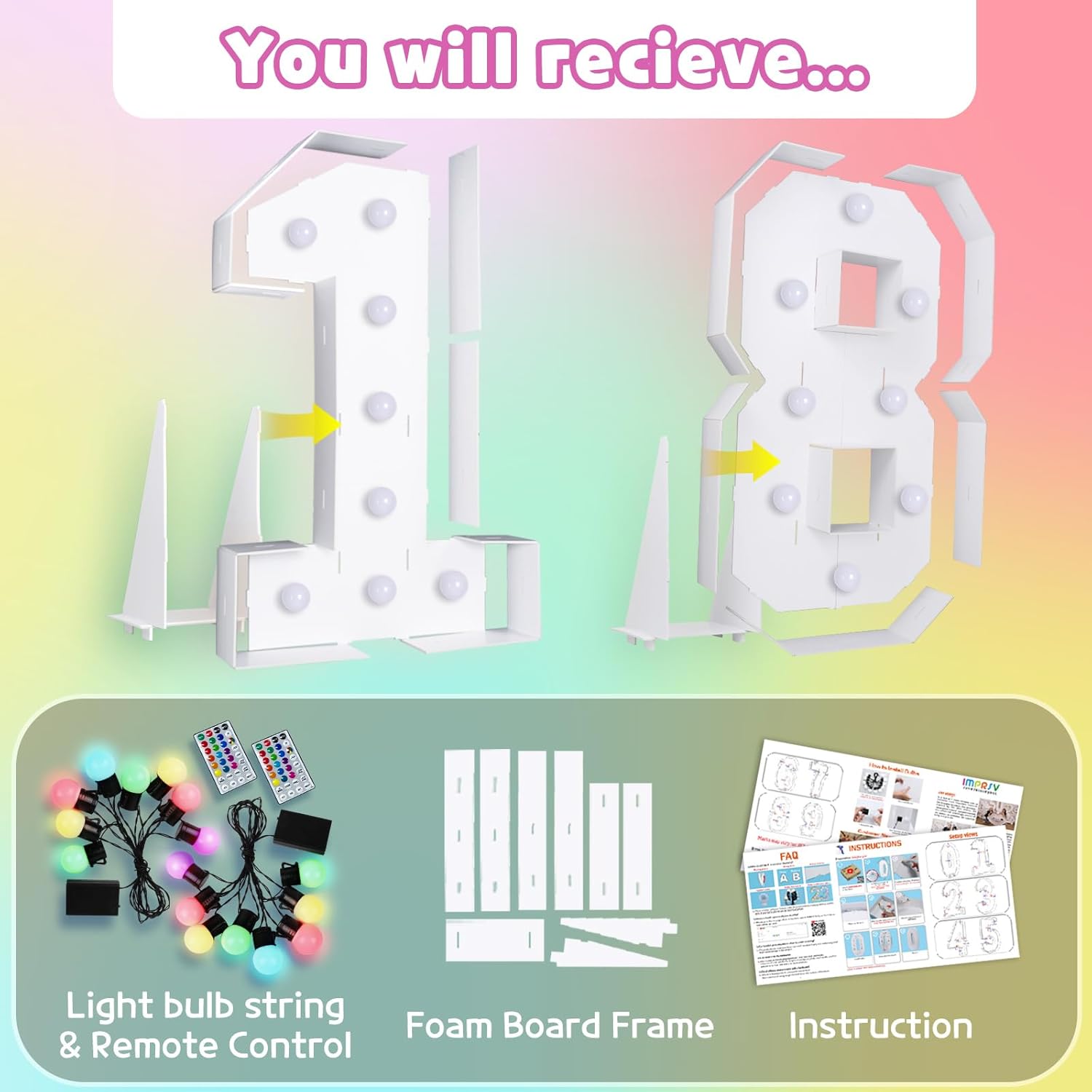 Marquee Numbers 18th-Birthday Decoration: Colorful 4FT Large Light Up 18 Year Old Birthday Decorations Anniversary Backdrop for Boys Girls Cardboard Sign 18 Colors Number 18 Mosaic Balloon Frame