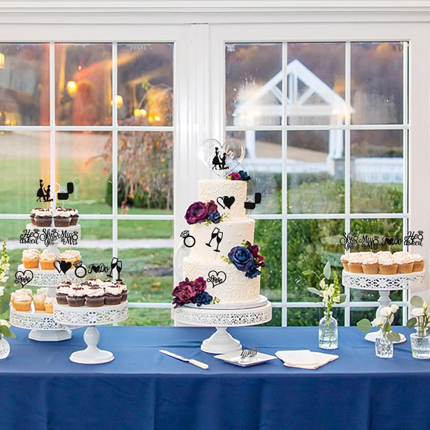 - No Assembled Required ! These he asked she said yes cupcake toppers are assembled in advance,so you don't need to DIY it by yourself,which can save you time and effort during the process of party preparation; You can insert them into your cake or cupcakes and adjust the suitable height to show better effects.