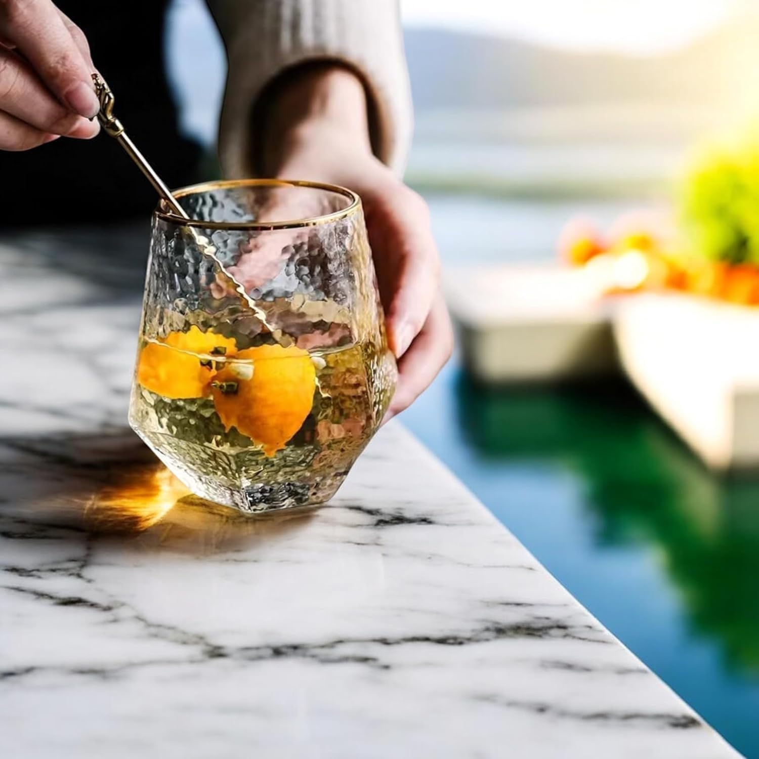 40 count Diamond Unbreakable Stemless Plastic Wine Champagne Whiskey Glasses Elegant Durable Disposable Indoor Outdoor Ideal for Home, Office, Bars, Wedding, 12 Ounce Cups (Hammered Gold Rim)
