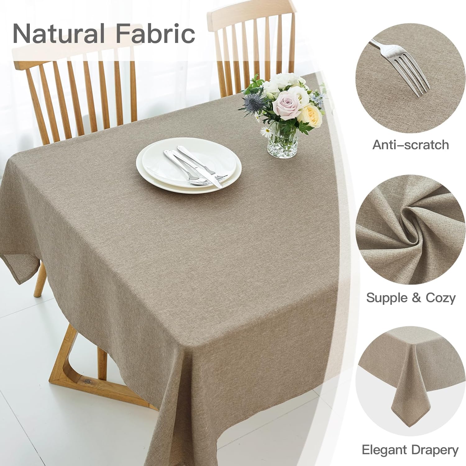maxmill Linen Textured Rectangular Tablecloth Water Resistant Wrinkle Free Spill-Proof Stain Proof Table Cloth for Dining Room Decoration, Banquet Party Wedding Holiday Dinner, 60 x 84 Inch, Mocha