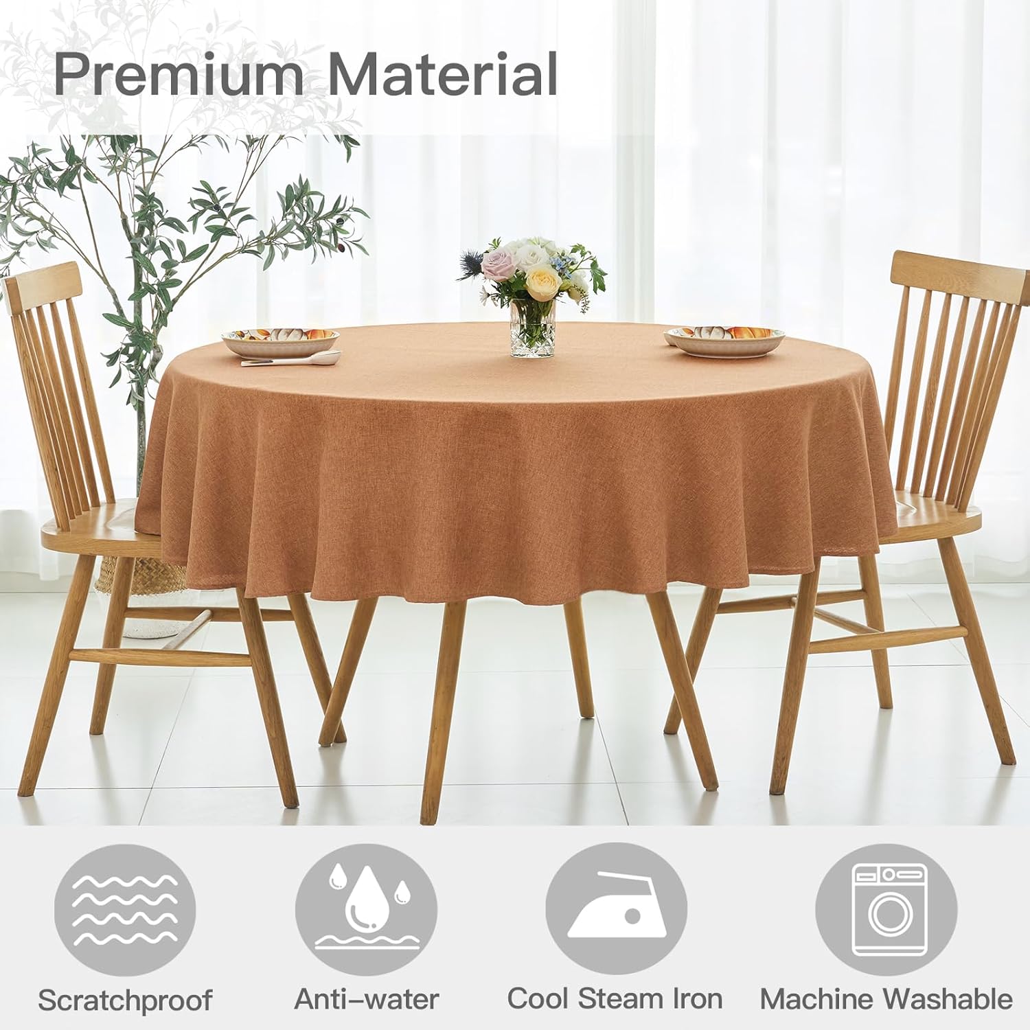 maxmill Fall Round Tablecloth Linen Texture Stain Resistant Waterproof Anti-Shrink Spillproof Washable Soft Table Cloth for Dining Room, Farmhouse Harvest Thanksgiving Holiday Party, 70 Inch, Amber