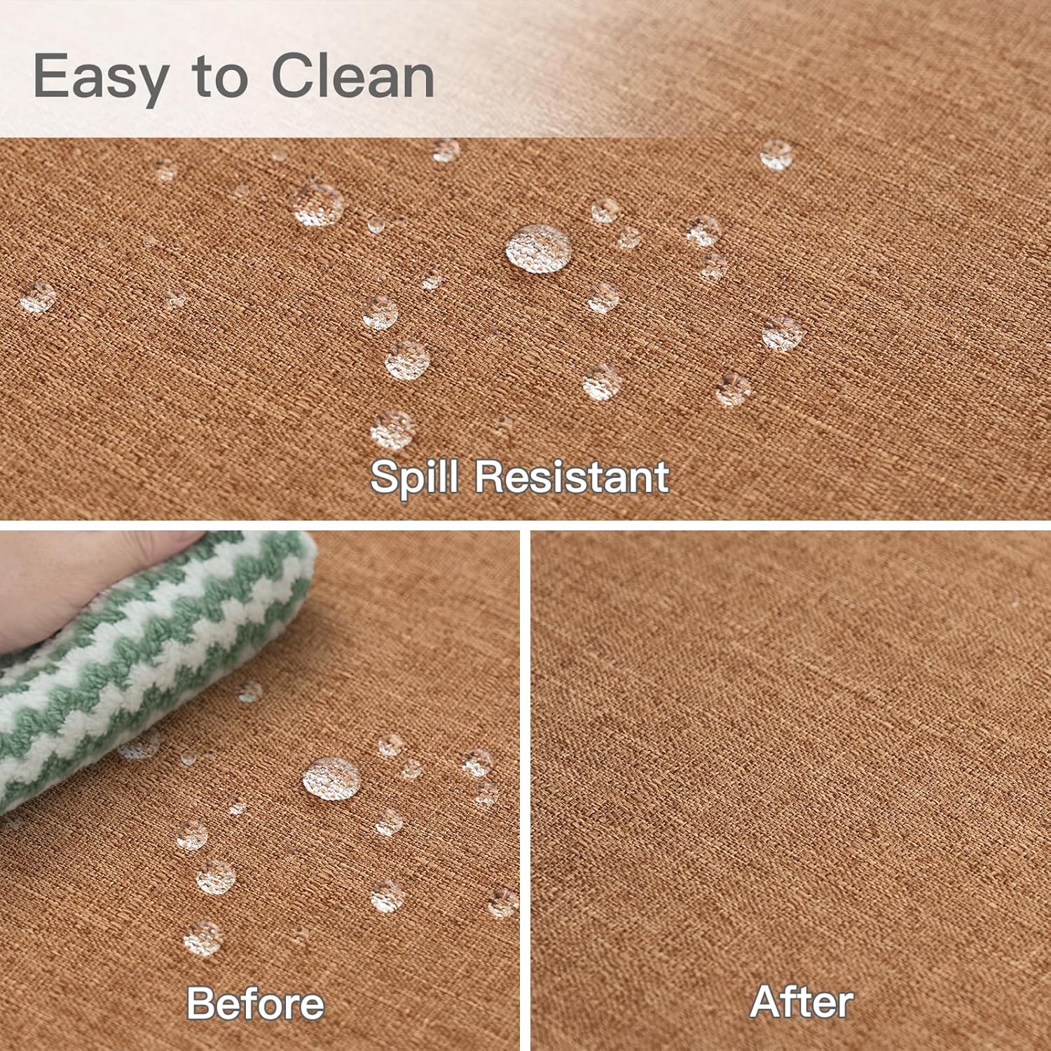 - **Easy to Care: **These tablecloths are spill-proof, water resistant. All liquids bead up for easy cleaning. Machine wash in cold water and tumble dry. Little or no ironing required. DO NOT BLEACH.