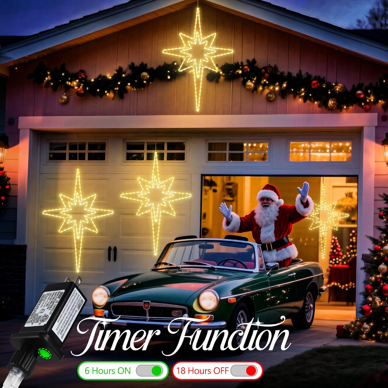 - TIMER FUNCTION:Jyoiat Christmas large bethlehem star lights feature a built-in timer that allows you to set Christmas lights to stay on for 6 hours and off for 18 hours. Free your hands and save energy.