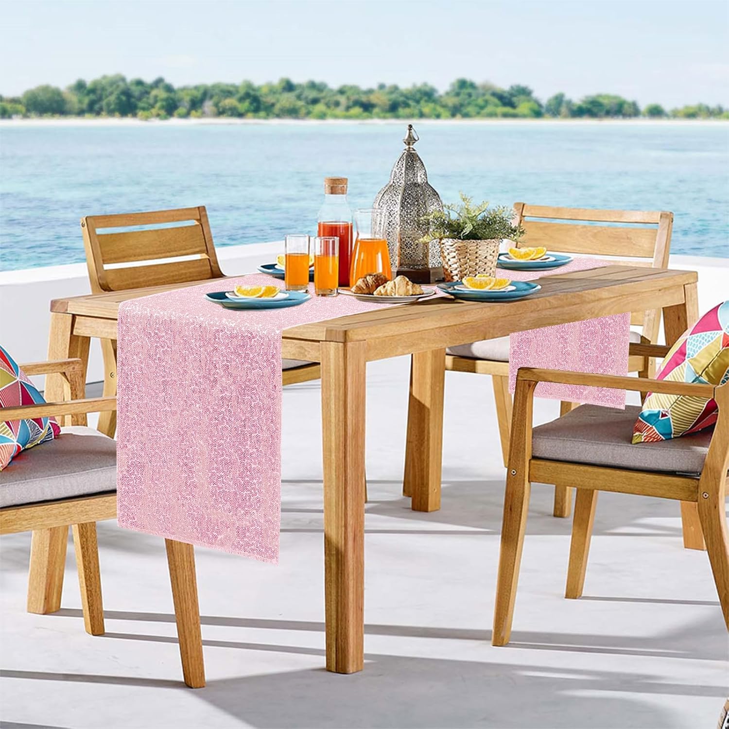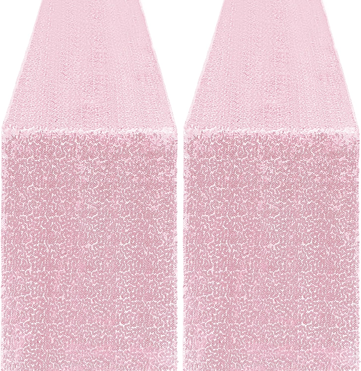2 Packs 12 x 72 inches Sequin Table Runner, Pink Glitter Table Runner for Birthday Party Supplies Wedding Engagement Baby Shower Holiday Celebration Event Decorations