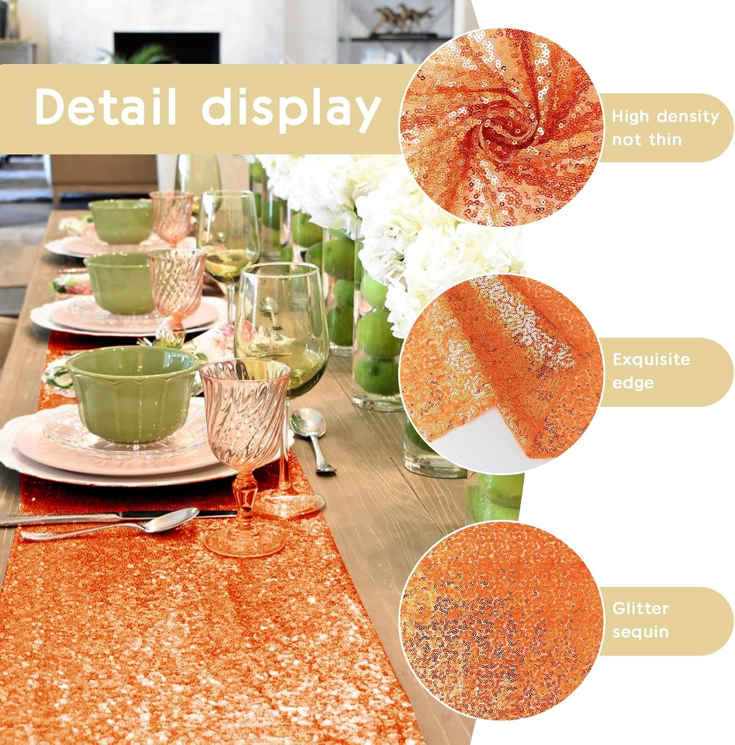 - High Quality Material: The sequin table runner is made of the polyester and sequins. 3mm glitter round sequins sew tightly on the mesh fabric, all the edges of the sequin table runners are well folded. It's normal for a few sequins fall off when you first use, please shake them off.