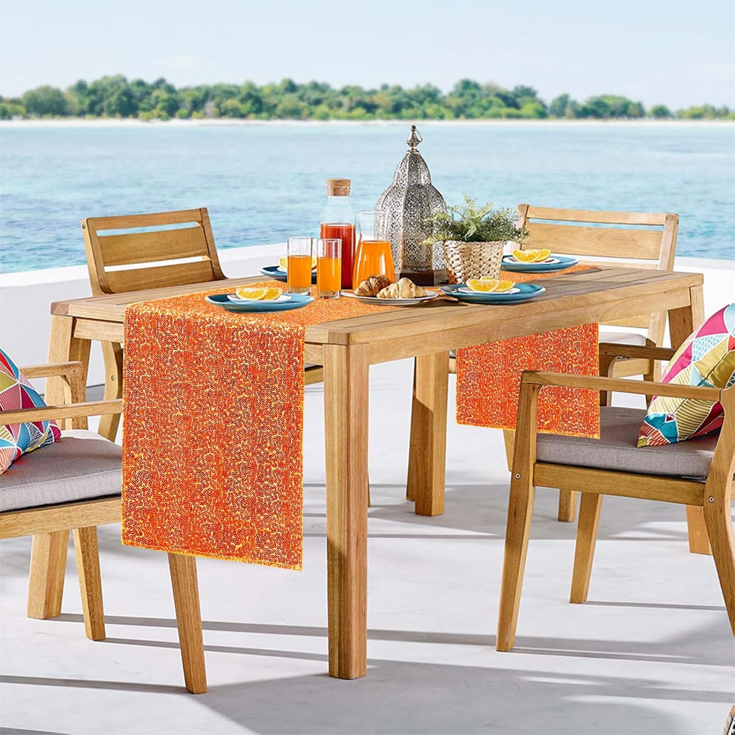 6 Packs 12 x 72 inches Sequin Table Runner, Orange Glitter Table Runner for Birthday Party Supplies Wedding Engagement Baby Shower Holiday Celebration Event Decorations