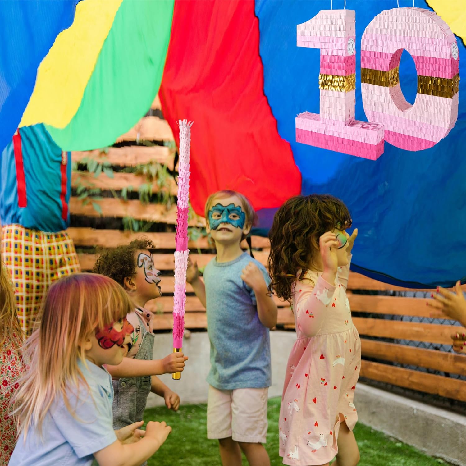 - [Full of Fun] Tap the piñata with a stick until the candies inside fall out, increasing the interactivity and fun atmosphere of the party. The gradual pink piñata with gold color is equally eye-catching as a decoration, making your party unique!