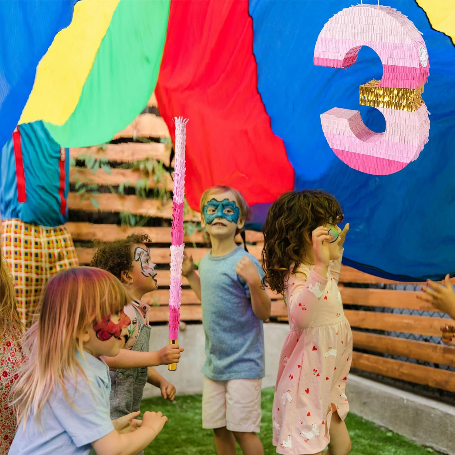 - [Size] Number 3 piñata: 20 x 13.3 x 3 in. Piñata stick: 30 in. The large piñata is more noticeable as a party decoration, the extended stick makes hitting easier and the stick is reusable.