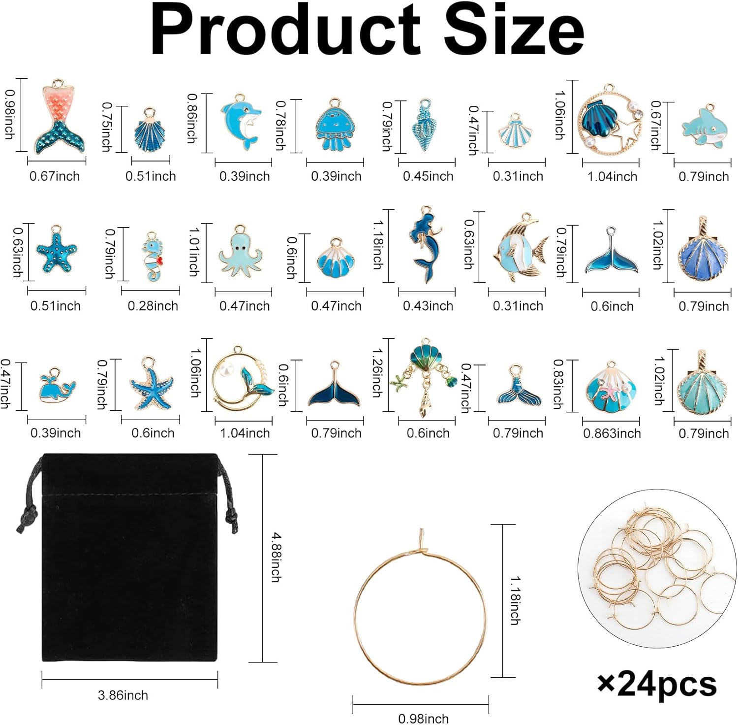 - Package Content: You will receive 24 pieces blue ocean themed charms and 1 storage bag. 24 wine glass charms of different patterns are combined with some classic elements of ocean, such as shells, starfish, dolphins, jellyfish, seahorses, mermaids and so on. These cute wine glass tags are sure to bring more joy to your party time