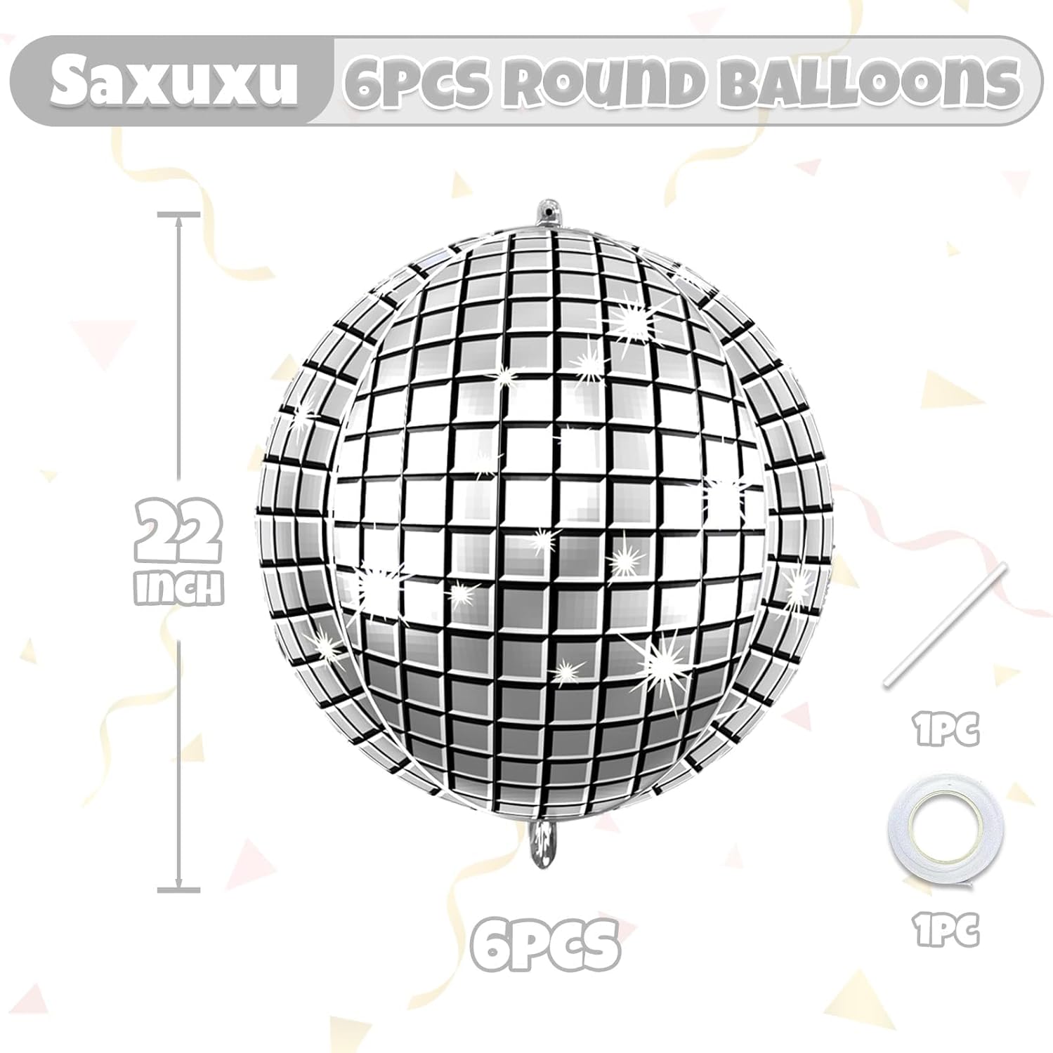 6Pcs Giant 4D Disco Ball Balloons, Sparkle Silver Disco Party Decorations, 22 Inch Round Foil Balloons for NYE 2025 Birthday Party Baby Shower Wedding Decorations