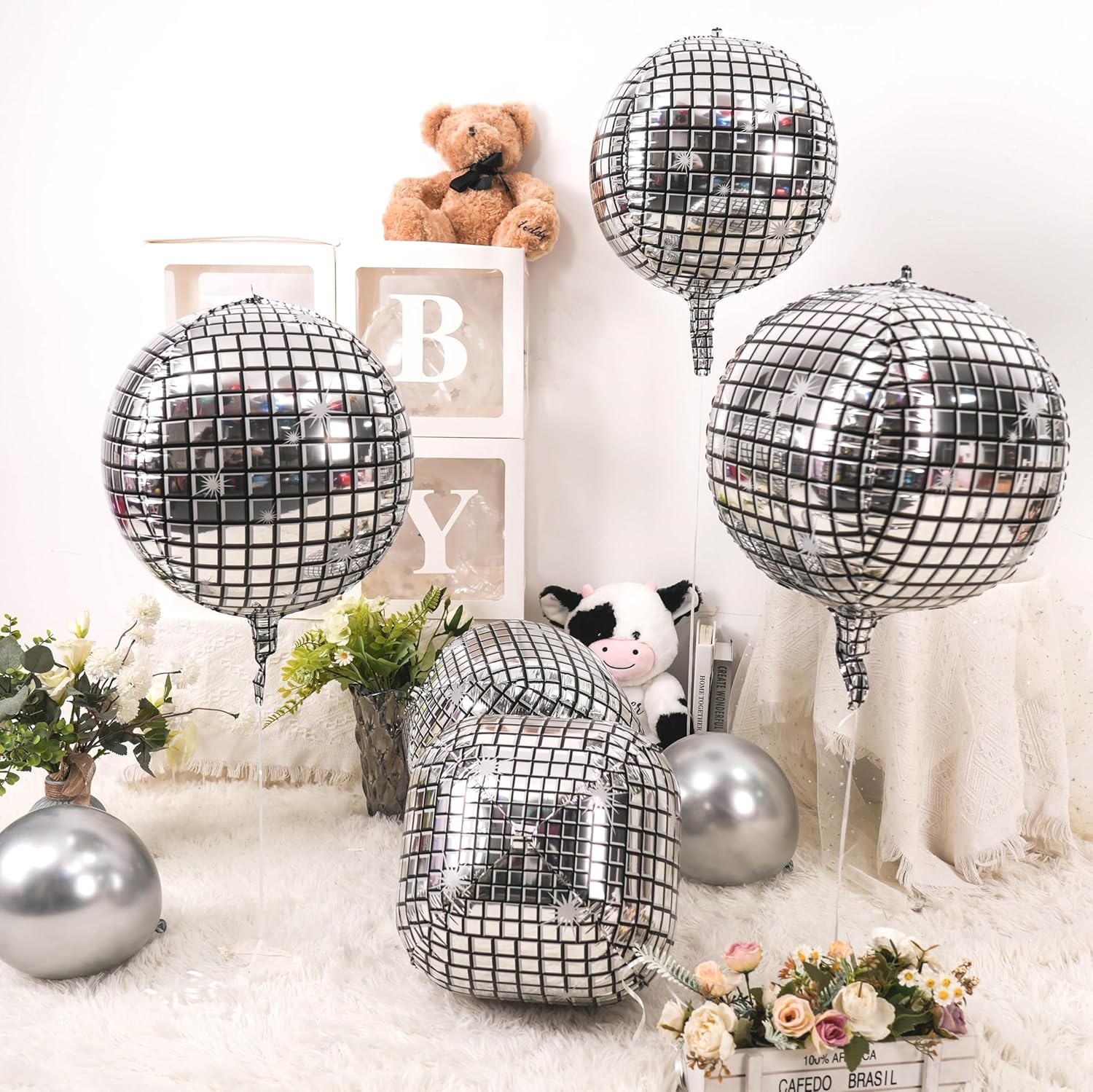 - Giant Mirror-Finish Disco Balls – These 22-inch metallic silver balloons create dazzling reflections, perfect for 70s/80s disco parties, and 2025 graduation celebrations. Their ultra-shiny surface mimics real disco balls for authentic retro vibes.
