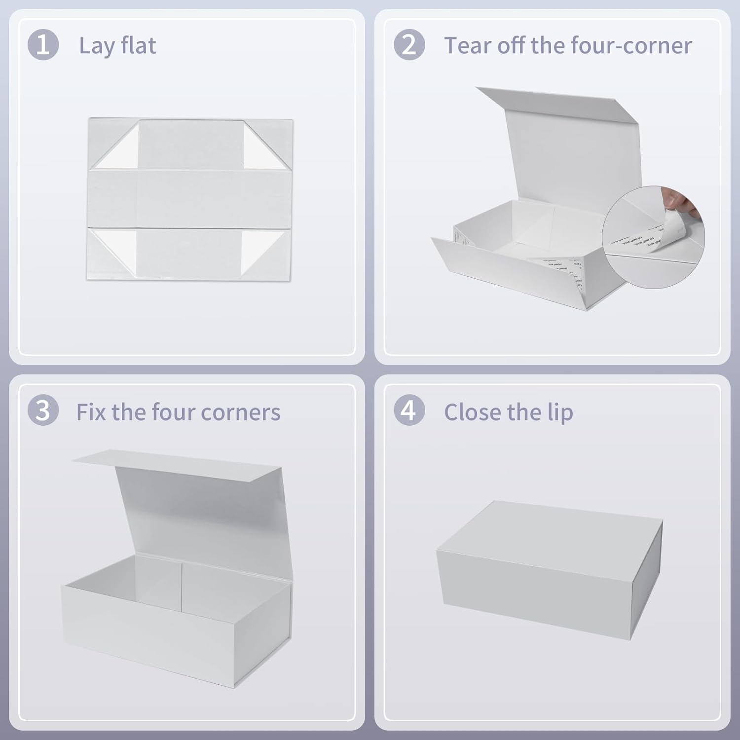 - EASY TO ASSEMBLE: For easy transportation,the gift box is designed to be folded. Unpack the package,tear off the white triangle sticker,paste and assemble the box.