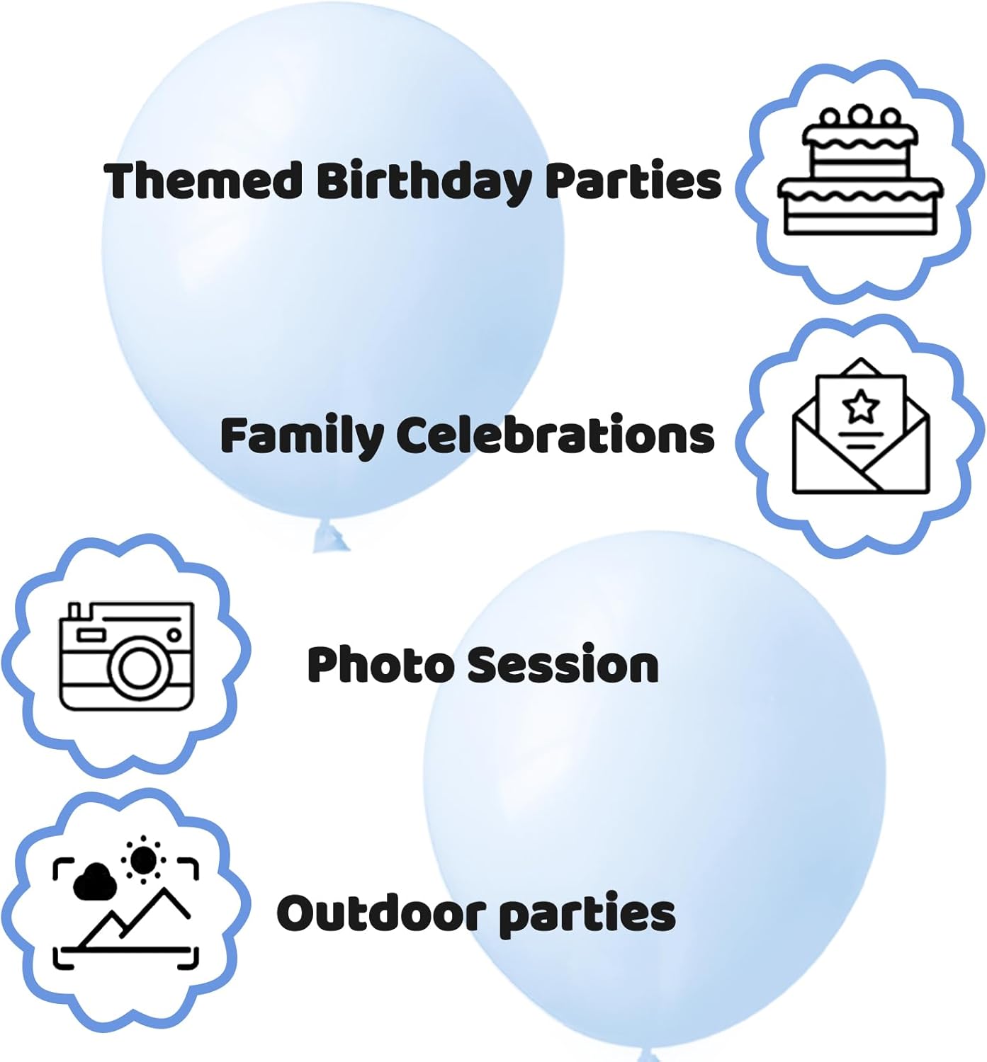 - The 12 inch pastel blue Latex Party Balloons included in the package can make your Party Decoration such as Birthday Party, Baby Shower,Wedding, Halloween or Christmas Party, etc. have enough pastel blue Balloons to decorate.