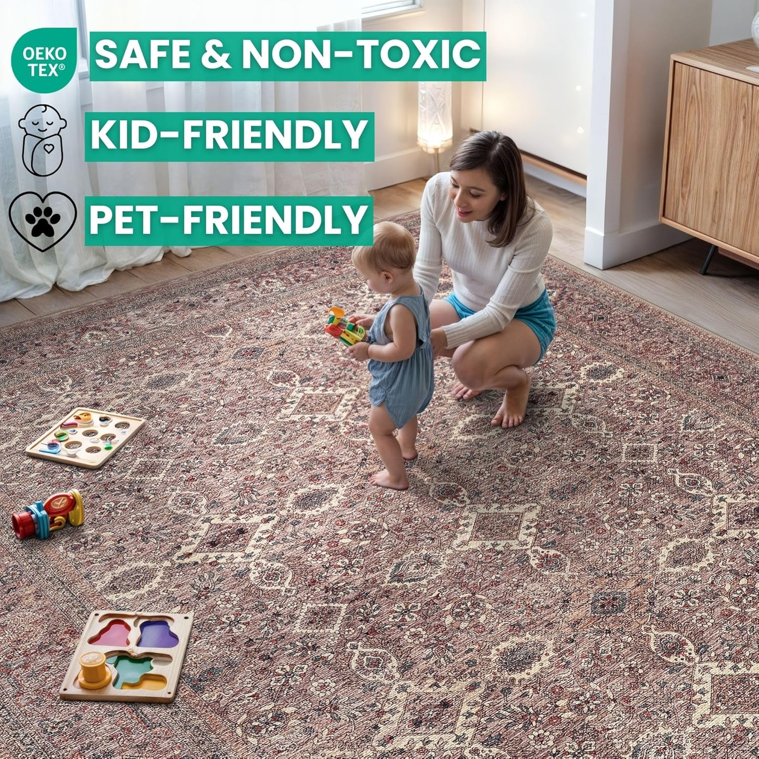 - EASY TO SETUP AND NON-SLIP: This one-piece machine washable rug with non-slip backing attached eliminates any additional setup. Simply unfold and lay flat upon arrival in the desired space. Non-slip backing prevents the rug from moving or sliding without the need for additional rug pad or grippers.