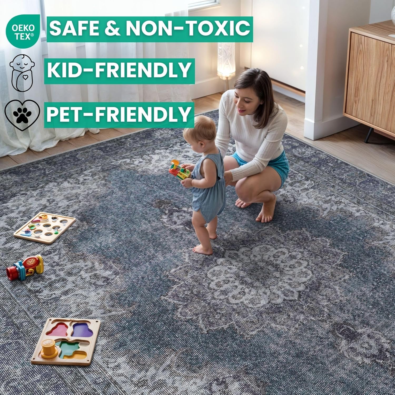 - MACHINE WASHABLE: Machine wash on delicate cycle (do not use bleach) at 85°F (30°C) and line dry or dry on air-only cycle without heat. Vacuum regularly and spot clean small stains. This easy to clean rug is perfect for families with kids and pets, and for high traffic areas.