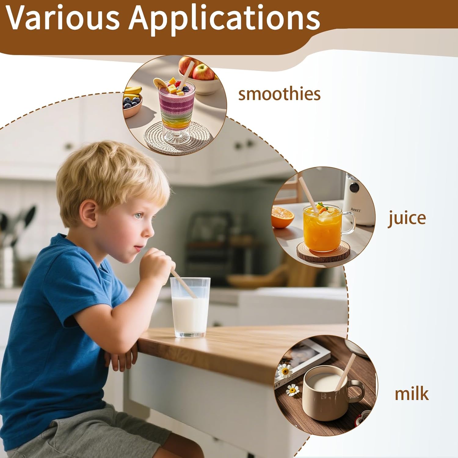 - High-quality materials - The long straws disposable are made of sugarcane fiber, which is made of 100% natural plant materials. The drink straws will neither dissolve nor impart flavor to your drinks. The bulk straws are suitable for hot coffee, juice, iced tea, and other hot or cold drinks