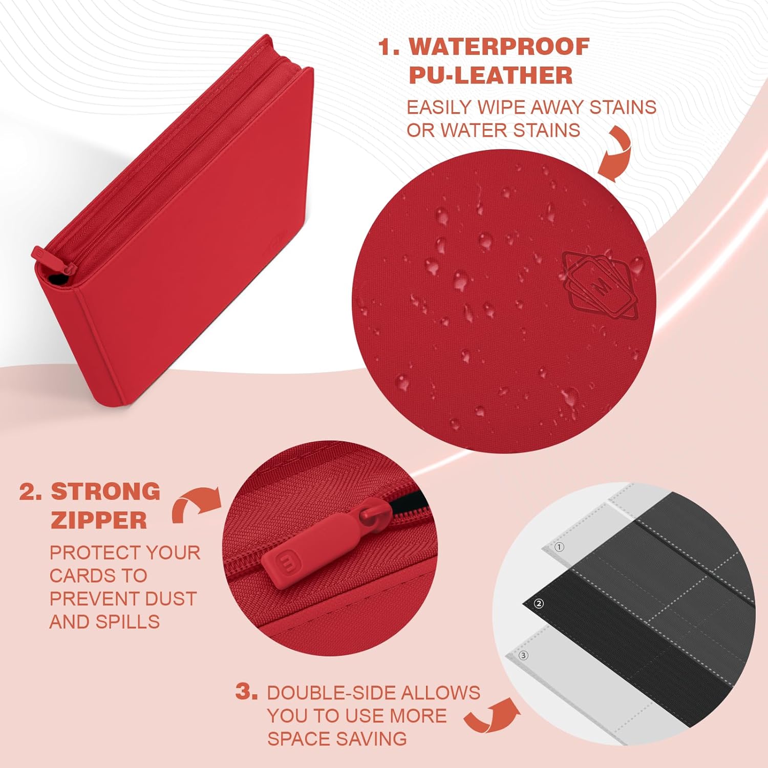 - 【PREMIUM QUALITY MATERIAL】 Our card binder is made of textured PU leather finish which is durable and comfortable. It more resistant to water and dust, Designed to keep card securely in place. Quality zipper keep cards protected and intact when not in use.The perfect way to safely browse your cards and never have to worry about your valuable cards being damaged. Offer different stylish colors to match your tastes.