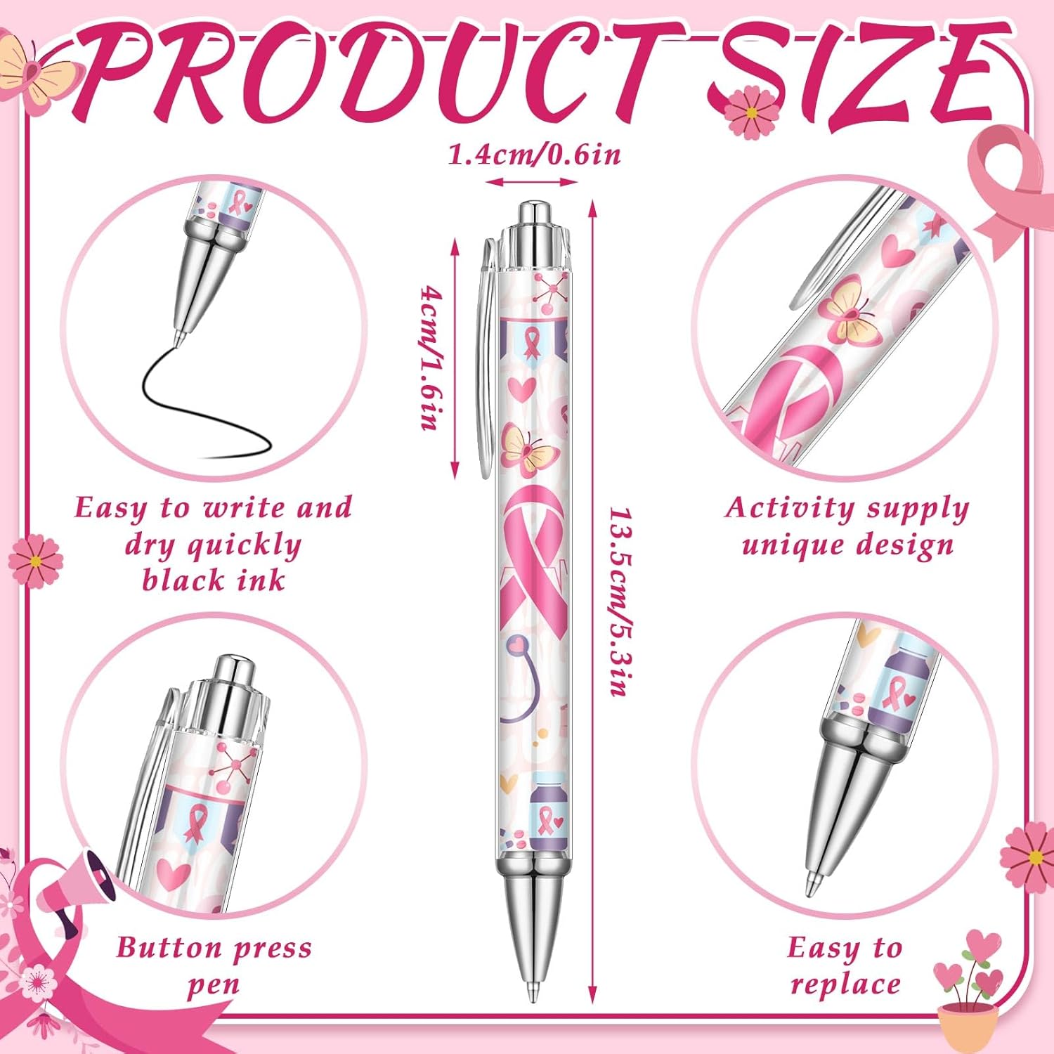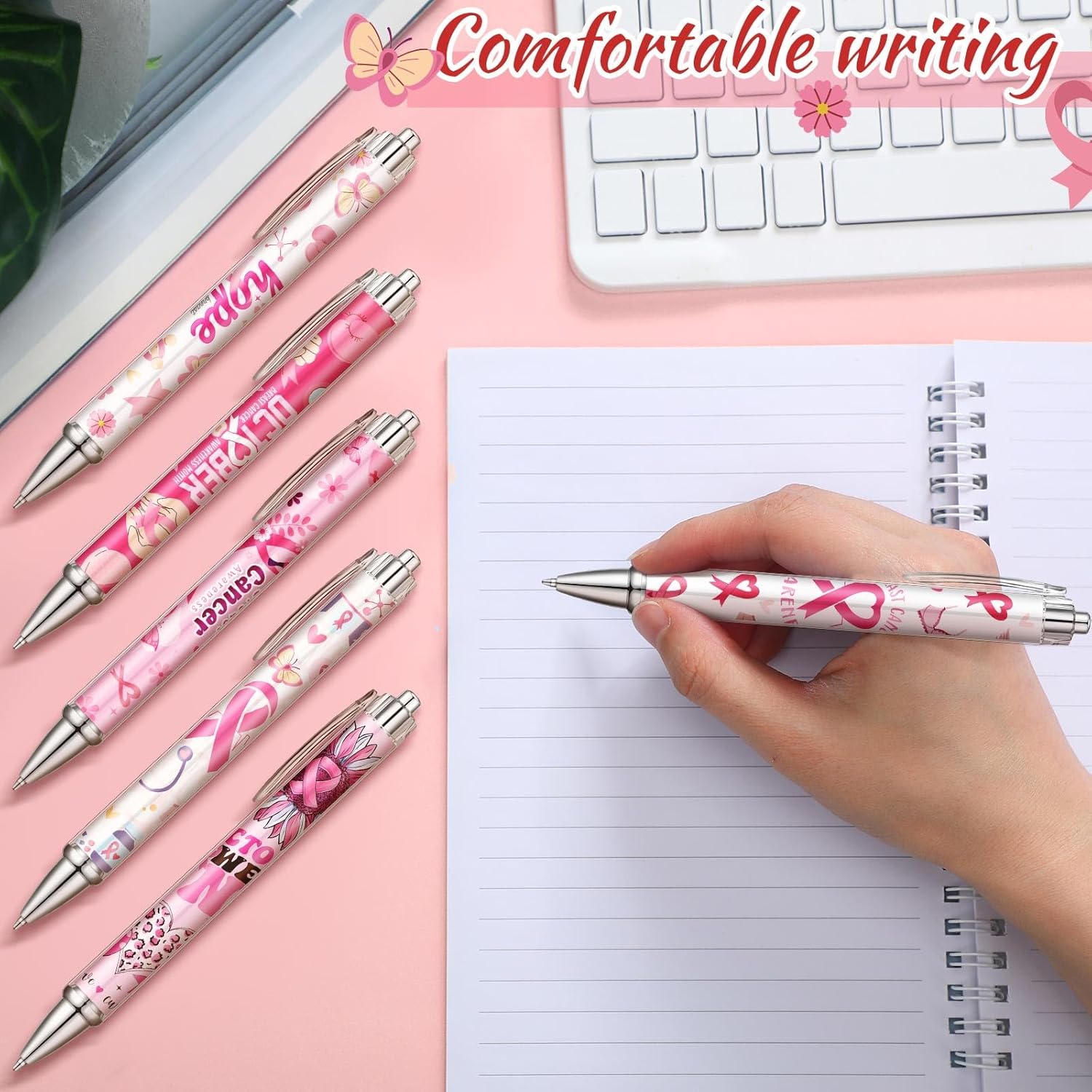 - Built to Last, Designed to Impress: crafted from durable materials, each pink ribbon gift pen in this set is made to withstand everyday use while retaining its bold graphics; These cancer awareness gift pens are ideal for daily writing needs, ensuring longevity and meaningful use