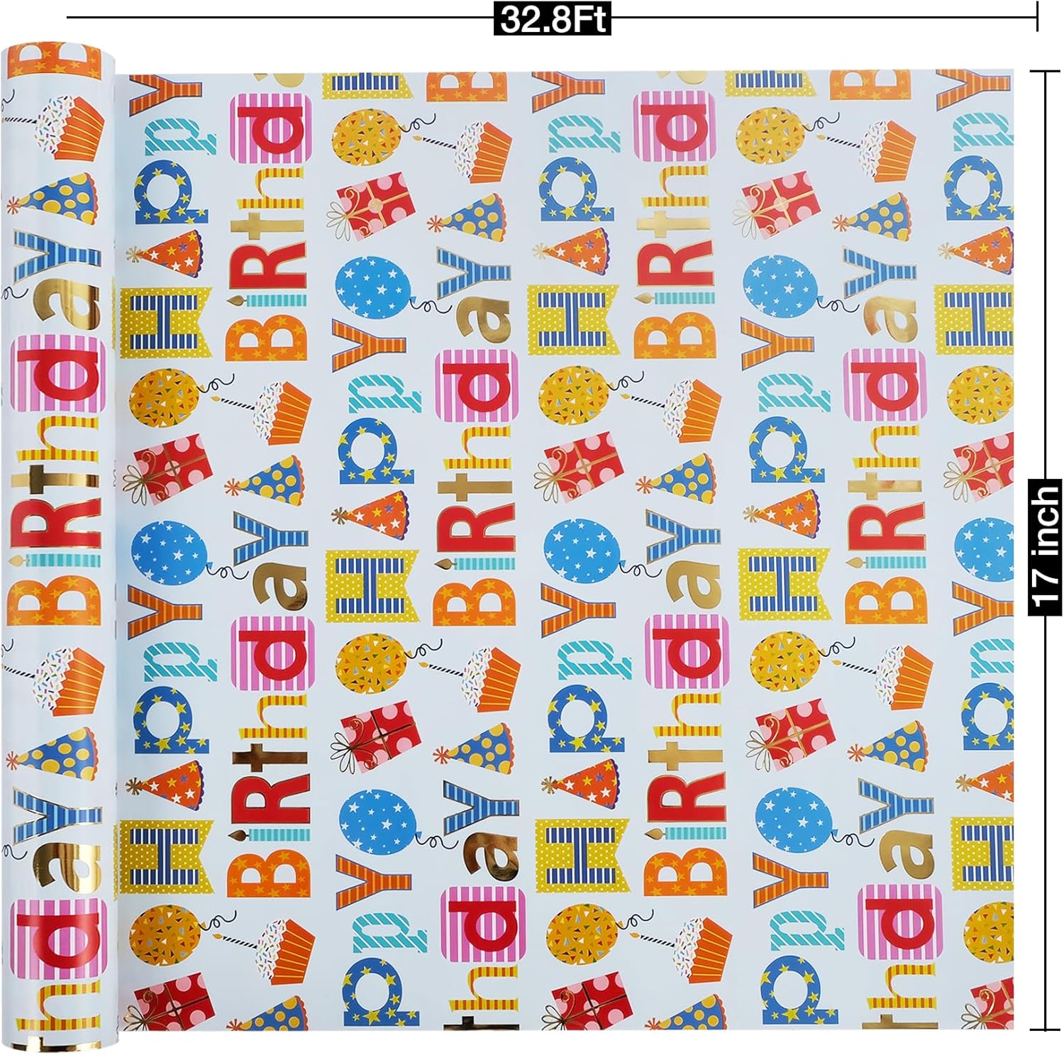 - Happy Birthday Design :Featuring gold foil "Happy Biythday" text makes the gift wrapping be more eye-catching, this wrapping paper creates a fun and joyful atmosphere perfect for any celebration