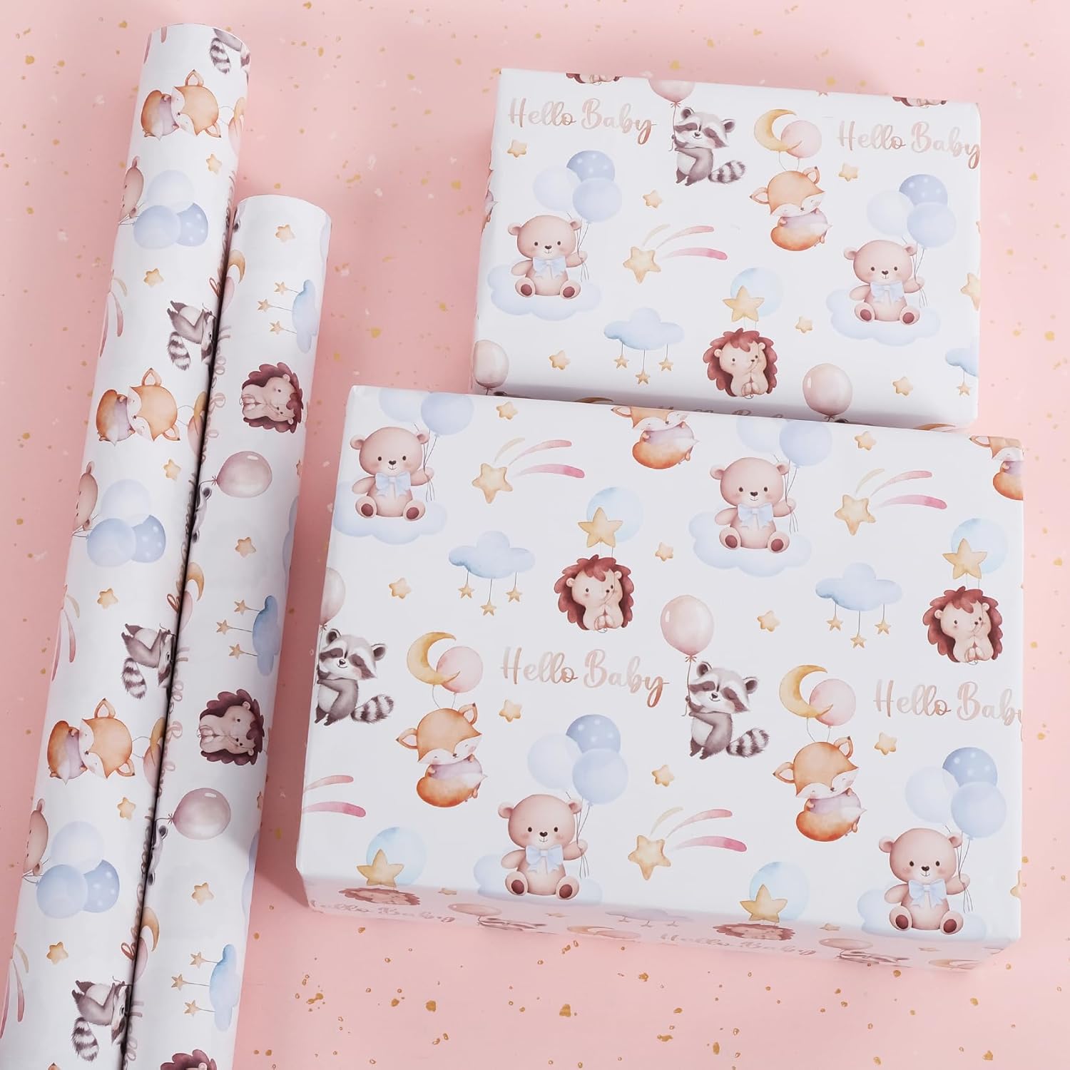 - Baby Shower Design:This wrapping paper with a cute bear, raccoon, fox, hedgehog design, making it perfect for any baby shower celebration or birthday party for boys girls