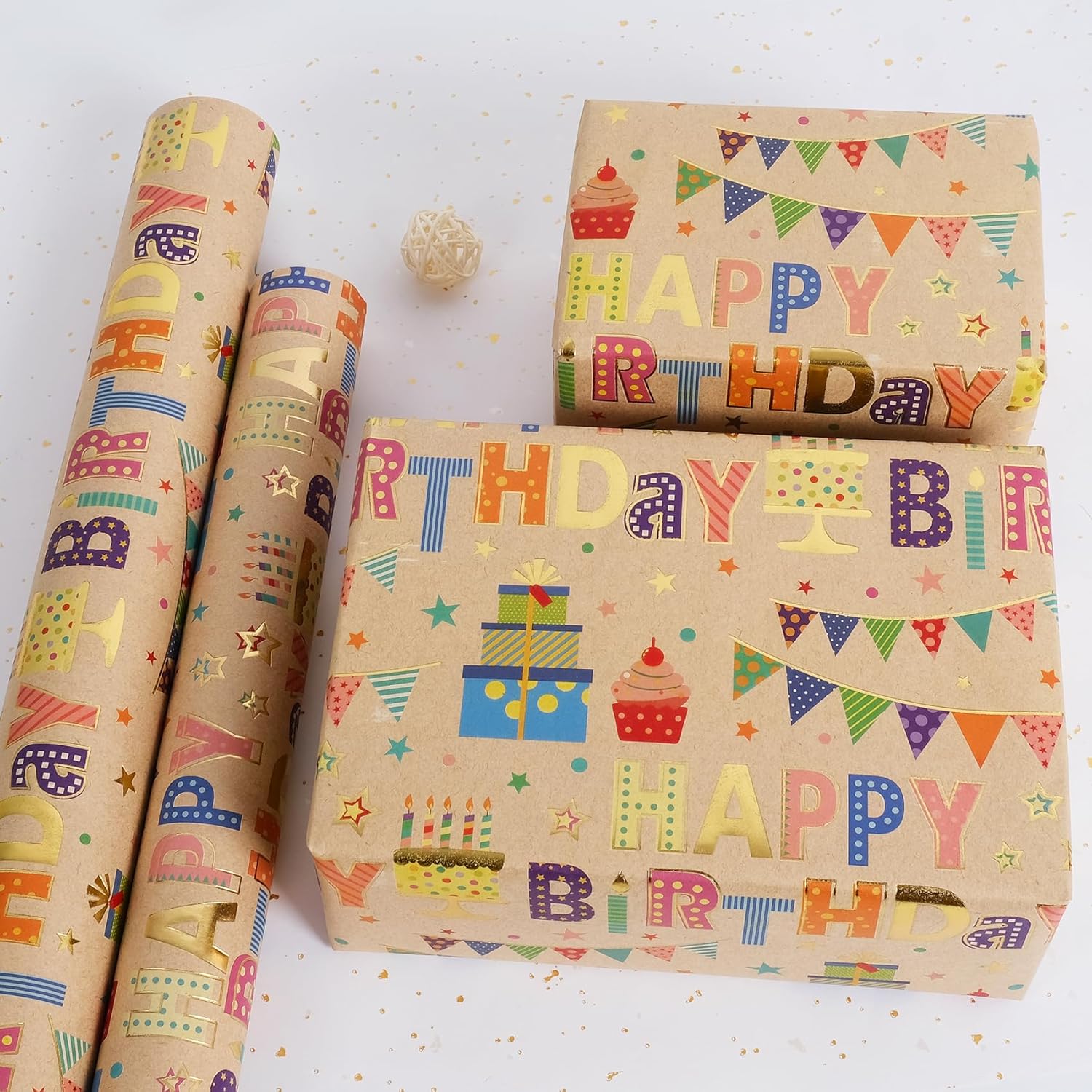 - Happy Birthday Design :Featuring gold foil "Happy Biythday" text makes the gift wrapping be more eye-catching, this wrapping paper creates a fun and joyful atmosphere perfect for any celebration