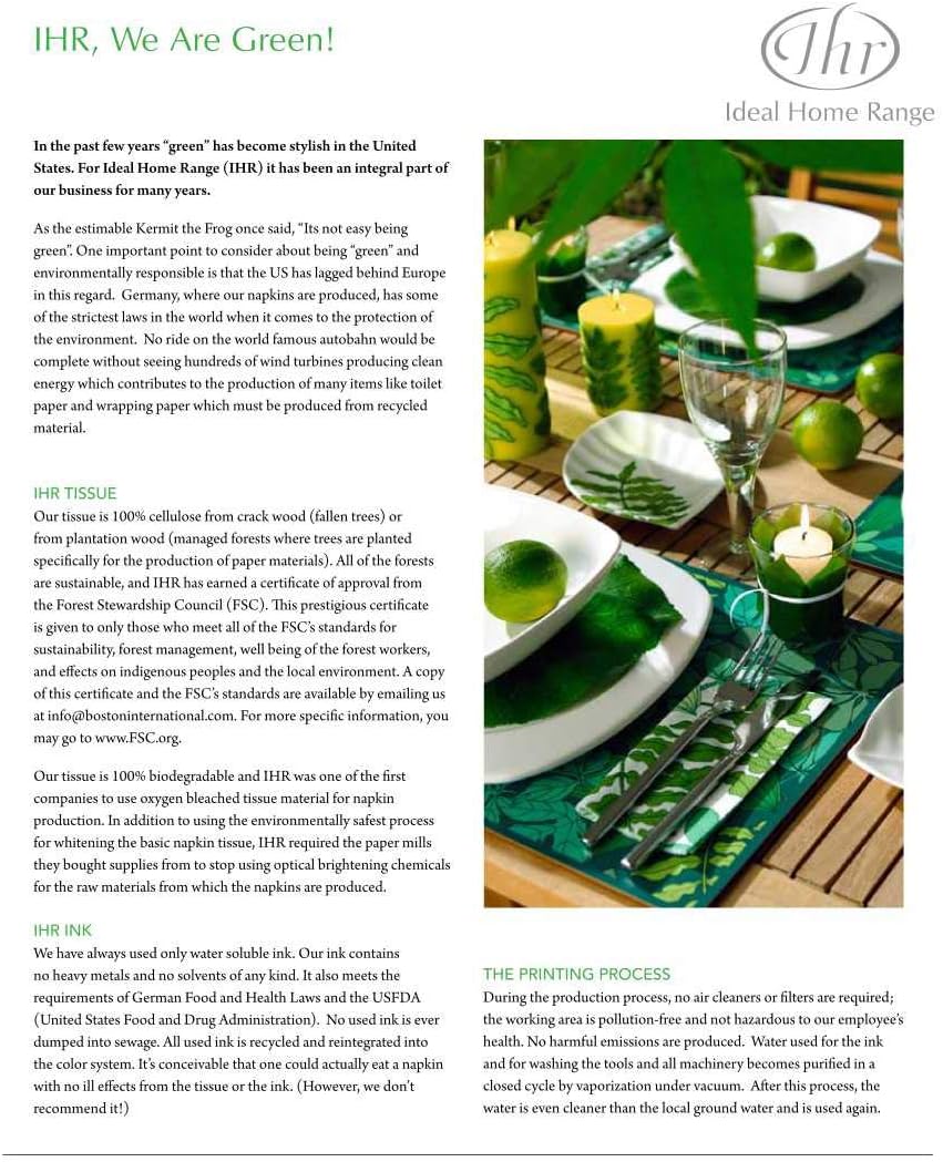 - IHR IDEAL HOME RANGE Since 1977 the premier luxe paper goods maker; printed in Germany with non-toxic, water soluble dyes