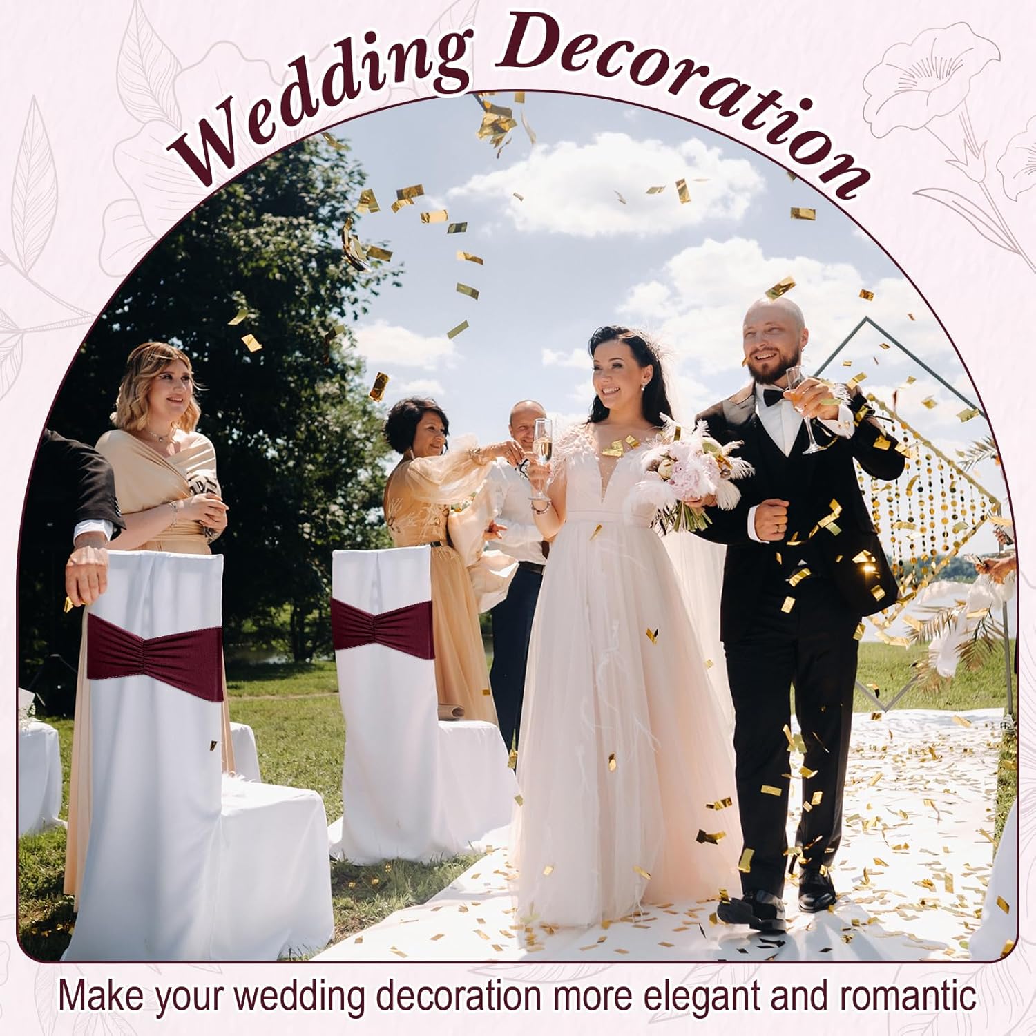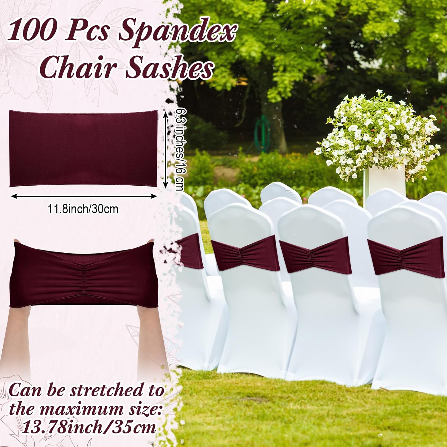 Moukeren 100 Pcs Spandex Chair Sashes Bows Bands Slider Sashes for Chair Covers Elastic Bands Ties Ribbon Decorations for Wedding Party Events Ceremony Birthday Banquet (Burgundy)
