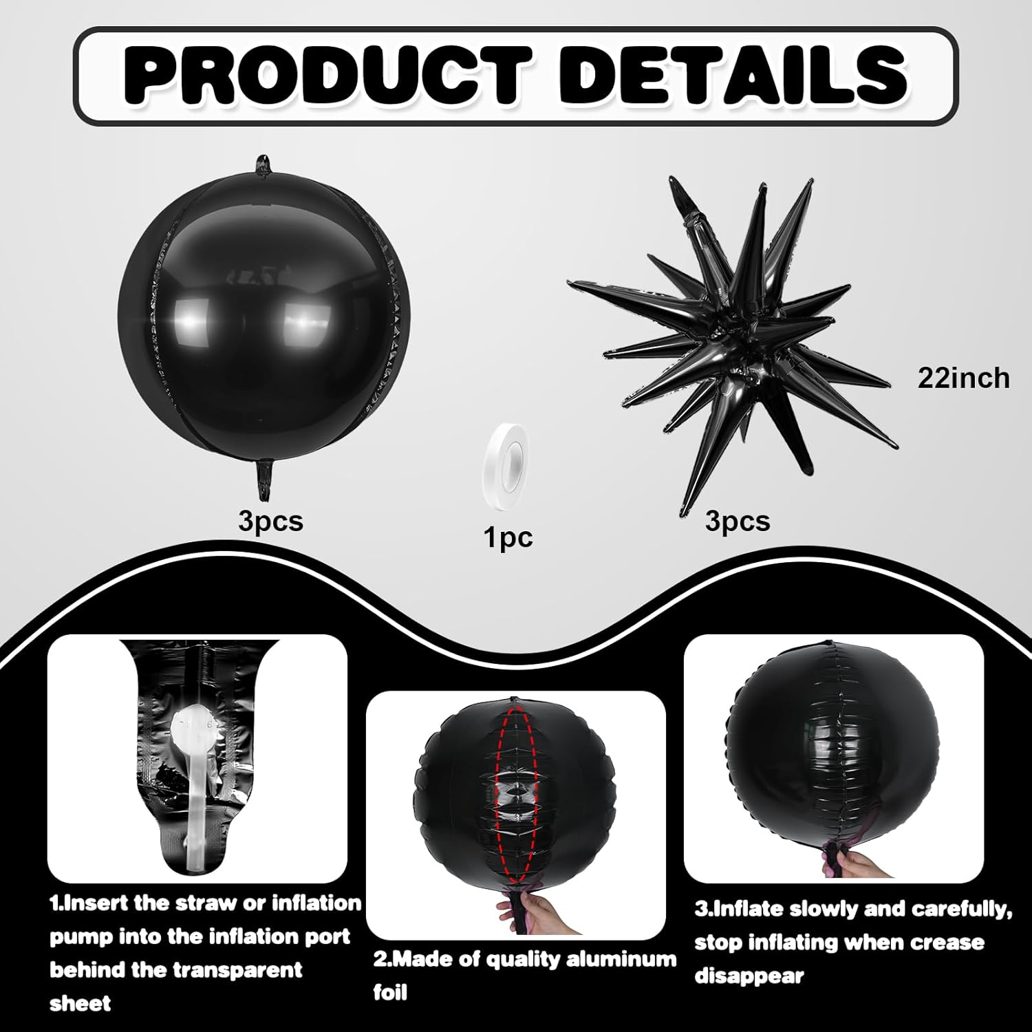 - 【Package】The package includes 3pcs 22Inch black 4D ball foil balloons, 3pcs 22Inch black star foil balloons,and ribbon.These huge balloons can help you decorate your party better.