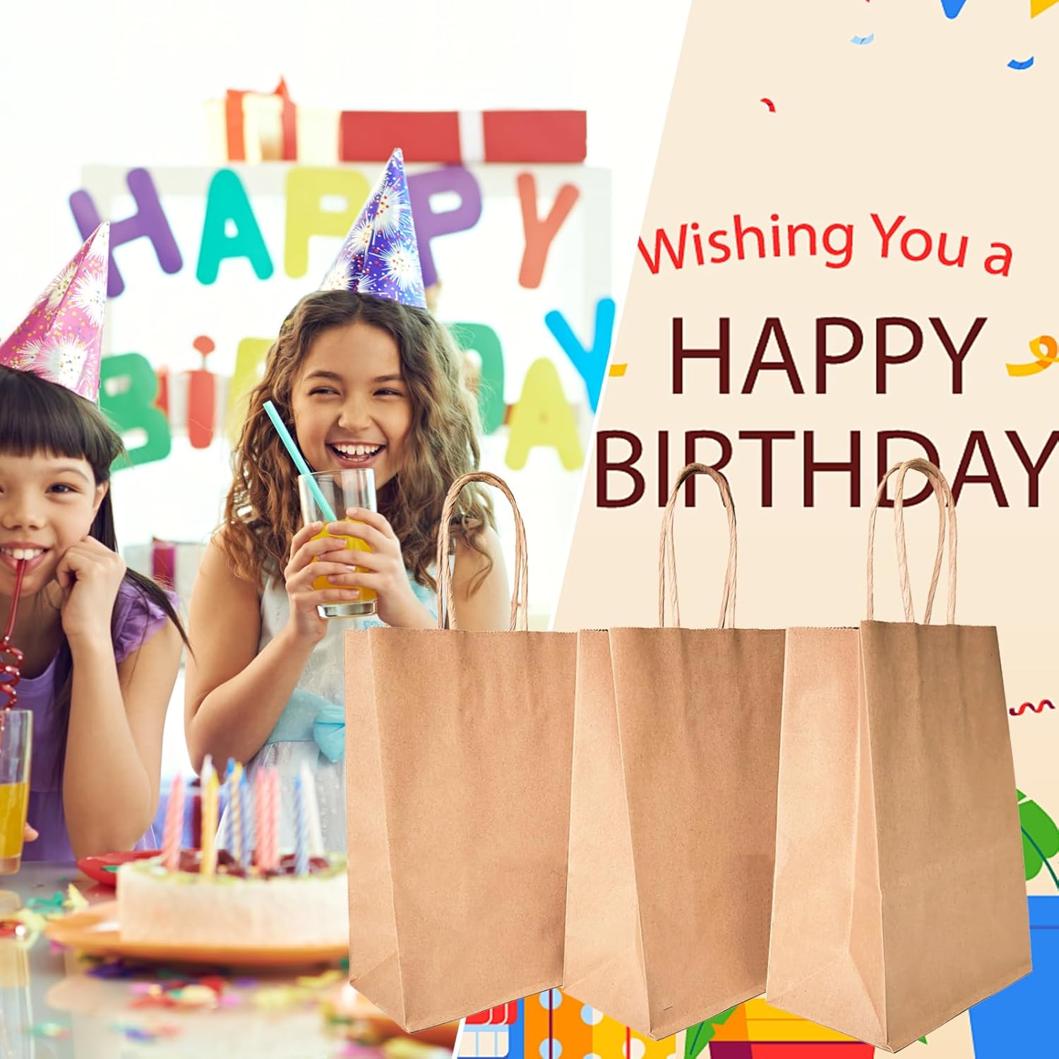BAG BOX 50 Pack 5.9x3.1x8.25 Inch Brown Gift Bags with Handles,Bulk Kraft Paper Bags for Shopping, Retail, Merchandise, Wedding, Party Favors, Paper Grocery Sacks