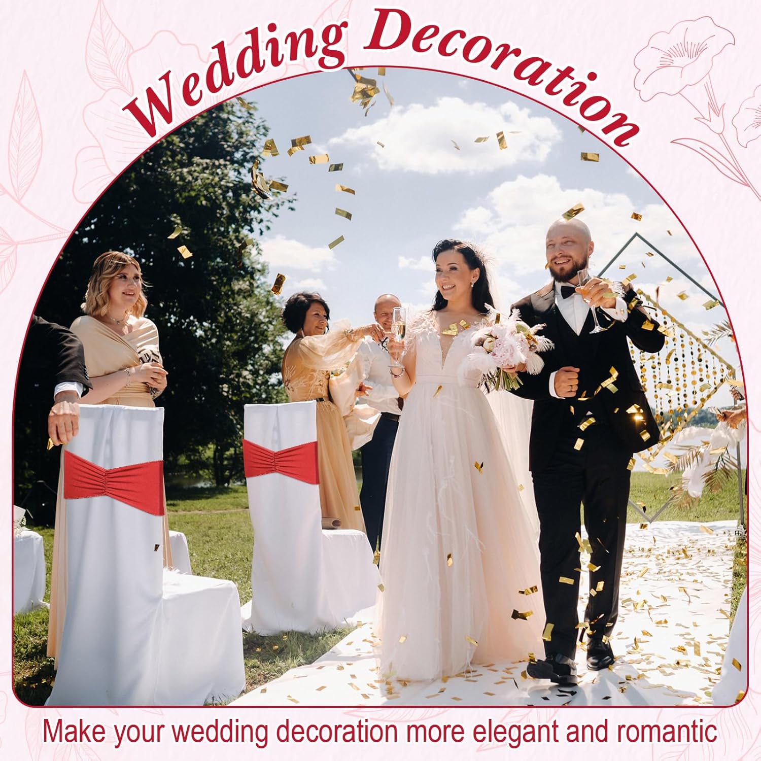 Moukeren 100 Pcs Spandex Chair Sashes Bows Bands Slider Sashes for Chair Covers Elastic Bands Ties Ribbon Decorations for Wedding Party Events Ceremony Birthday Banquet(Red)