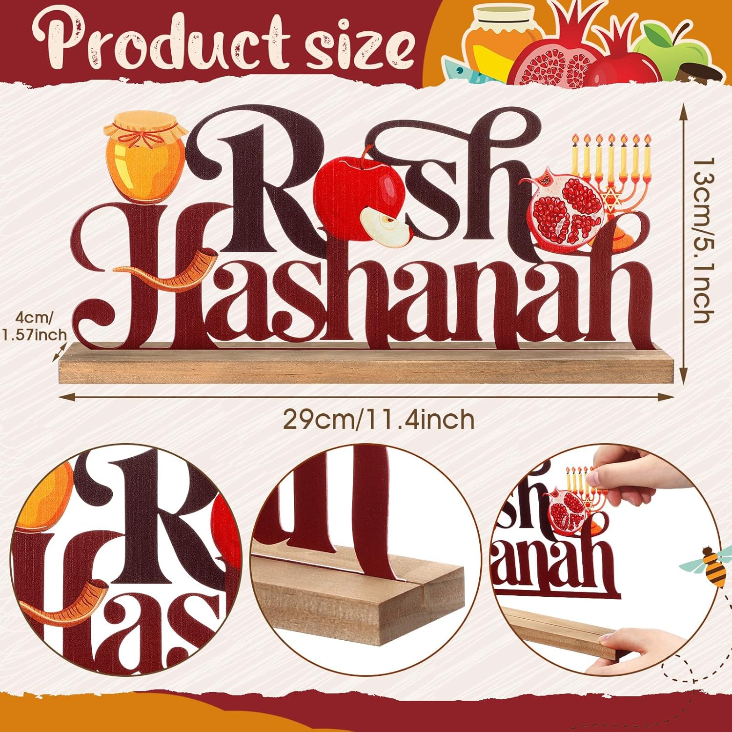 - Rosh Hashanah Themed Design: our Rosh Hashanah tabletop word sign designed with vivid metal wording and a solid wooden base; The sign is also decorated with apples and pomegranates, making it an eye catching decoration for your Rosh Hashanah celebration