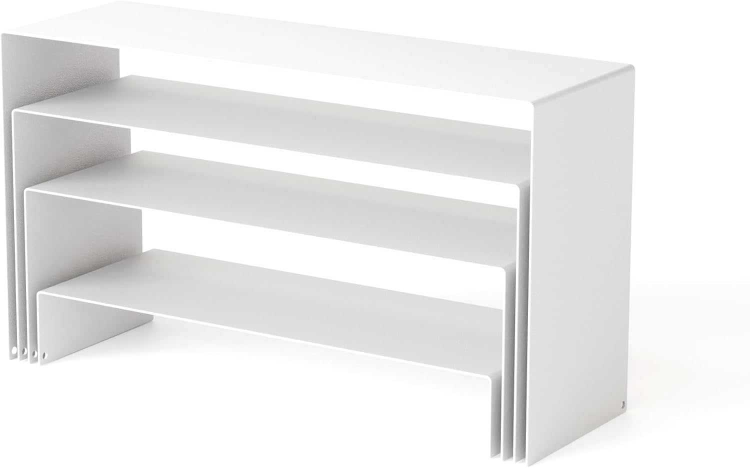 - 【Materials and Size】This black matte metal 8 pieces display stand comes in four sizes, namely 7.8*3*1.2 inches, 8.2*3*2.7 inches, 8.6*3*3.9 inches, 9*3*5.1 inches. Two sets of four sizes of displays stand,simply place the riser on the table, arrange your items, and display them, and you can turn any space into a place to show your personal style and appreciation of art and craftsmanship.