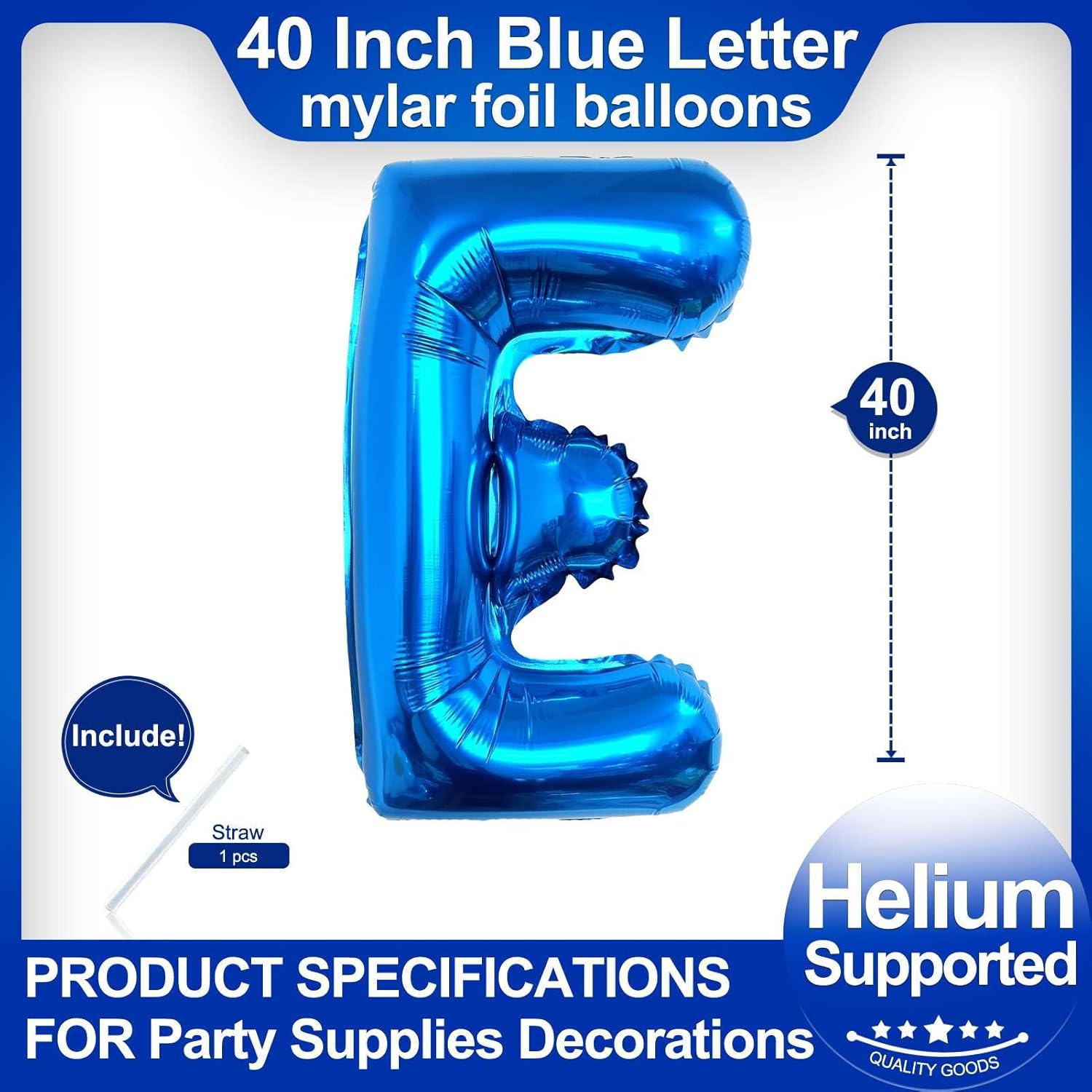 - Package included:One Blue Letter E Balloon*1,straw*1,40 inch Blue letter balloon