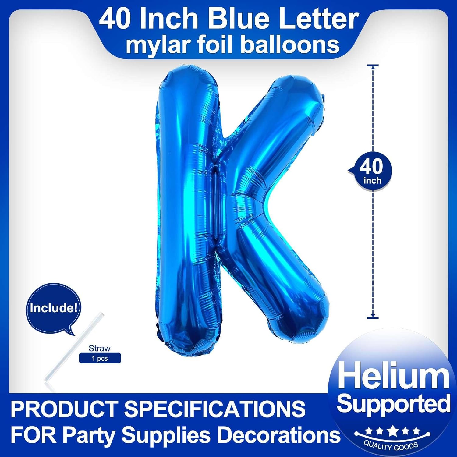 - Package included:One Blue Letter K Balloon*1,straw*1,40 inch Blue letter balloon