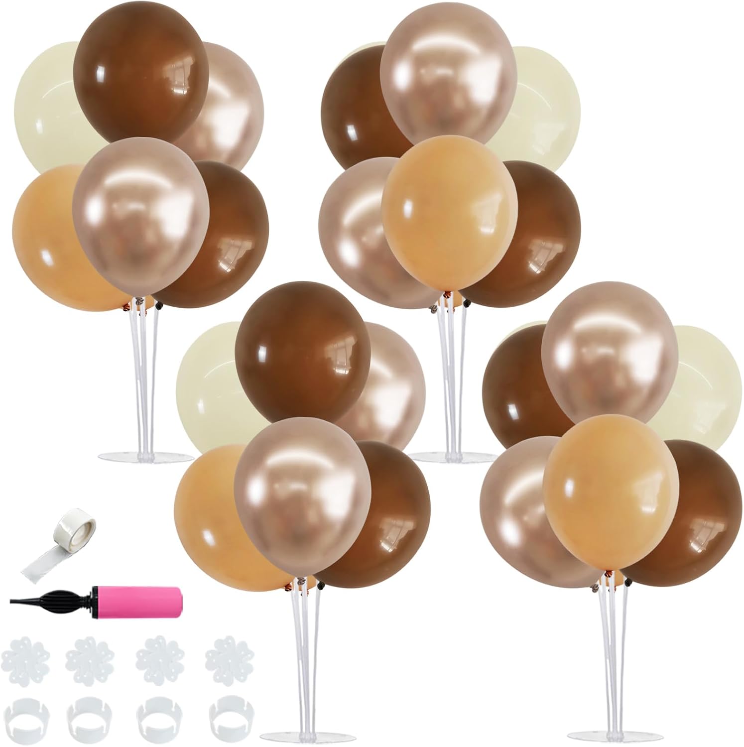 TONIFUL 4 Set Brown Champagne Gold Balloon Stand Centerpiece Table Decorations for Baby Shower Wedding Engagement Bridal Shower Anniversary Thanksgiving Decor Brown Birthday Party Decorations