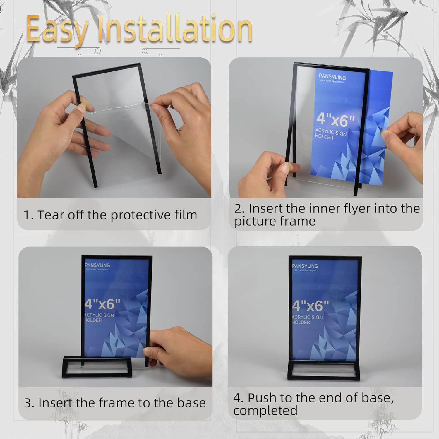 - 【Wide Application Picture Holders for Tables】These Acrylic frames can not only as picture holders at home, but as table number holders or sigh holders on wedding, coming-of-age ceremony, anniversary. Showing promotions and menus on cafes, restaurants, or hotels. Showcasing important info in office.