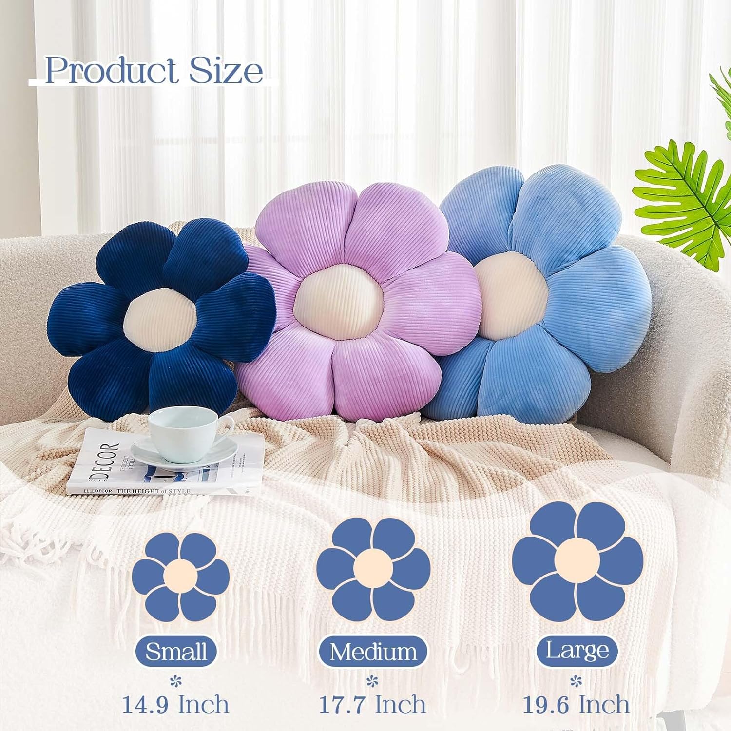 - Decorative Flower Pillow in 3 Sizes - This floral throw pillow is not only a practical choice but also a decoration for your living space. Small- 14.9 inches,Medium - 17.7 inches Large - 19.6 inches, whether placed on the floor, sofa or bed, it can easily enhance the overall beauty of the room and add cuteness and vitality to your bedroom decoration. a feeling of.