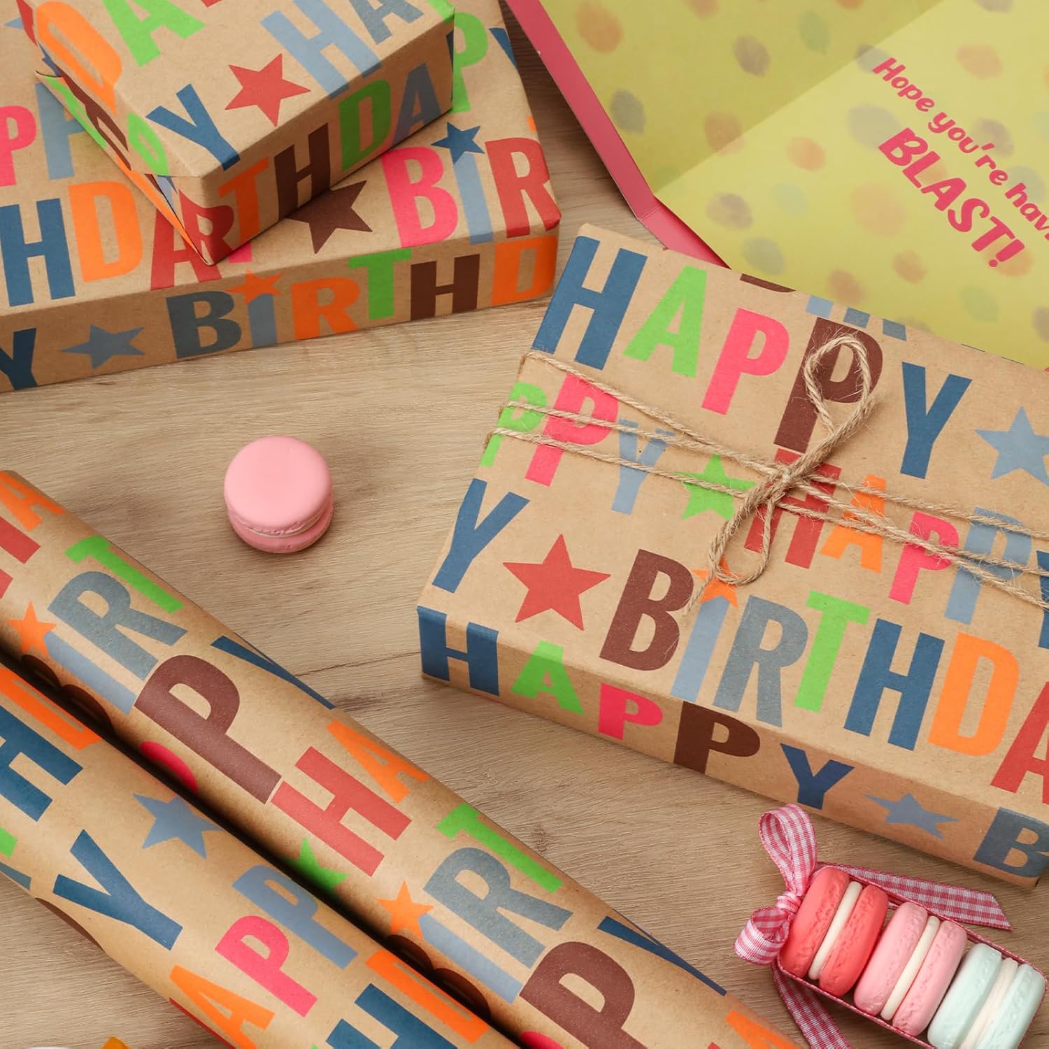 - Any Occasion: Featuring a colorful "Happy Birthday" pattern, the gift wrap paper adds a touch of celebration to any occasion, whether it's a baby shower, holiday party, or birthday celebration