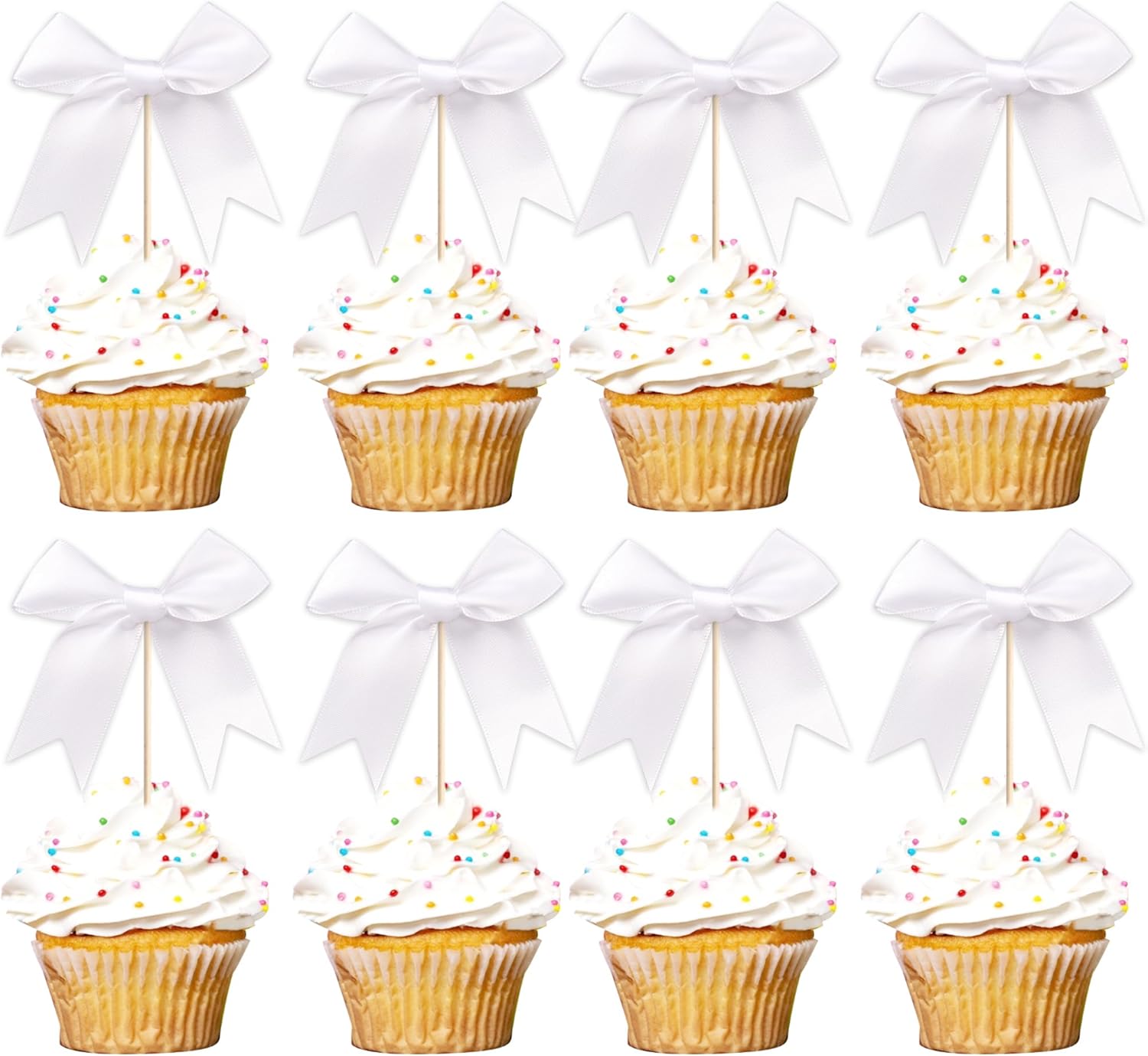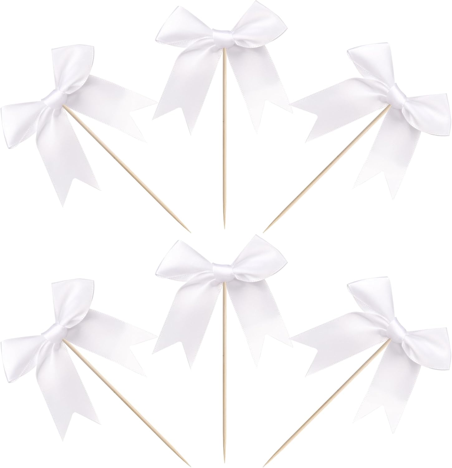24 PCS Bow Cupcake Toppers Bowknot Cake Toppers Bow Cupcake Picks Bowknot Birthday Party Decorations Bow Cake Dessert Picks for Wedding Bridal Engagement Baby Shower Birthday Party Supplies White
