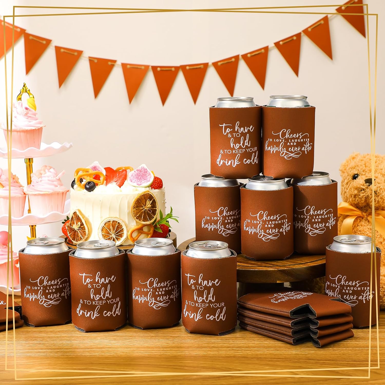 - Satisfying Party Package: our huge package containing 50 pieces of wedding can cooler decorations; Make every drink a celebration with our chocolate and white can coolers; They are suited to uplift the atmosphere at weddings, bridal showers, and bachelorette parties