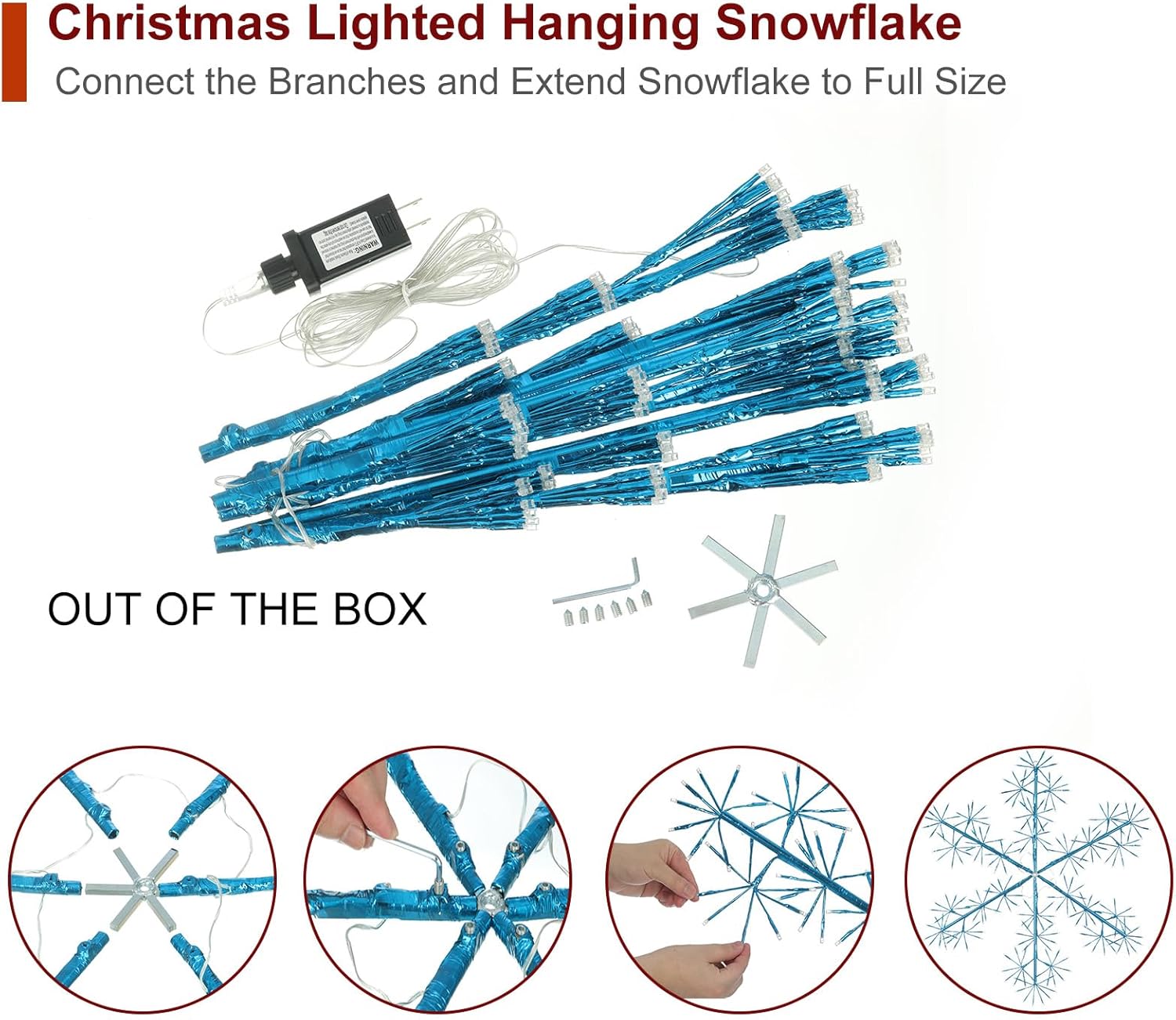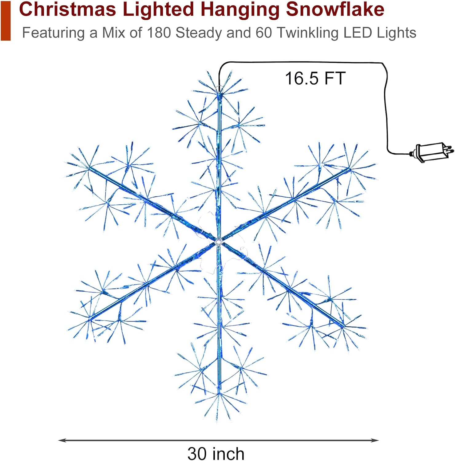 30’’ Christmas Snowflake Lights Outdoor, Pre-lit 240Pcs Blue LEDs Hanging Blue Snowflake Decoration for Home Indoor Outdoor Window Silhouette