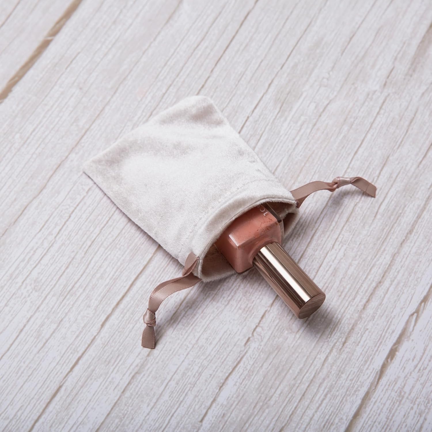 QIANF 12pcs Light Champagne Velvet Drawstring Bags 3x4 inches Glossy Small Velvet Cloth Gift Bags Jewelry Pouches for Storage Wedding Party Favor Christmas