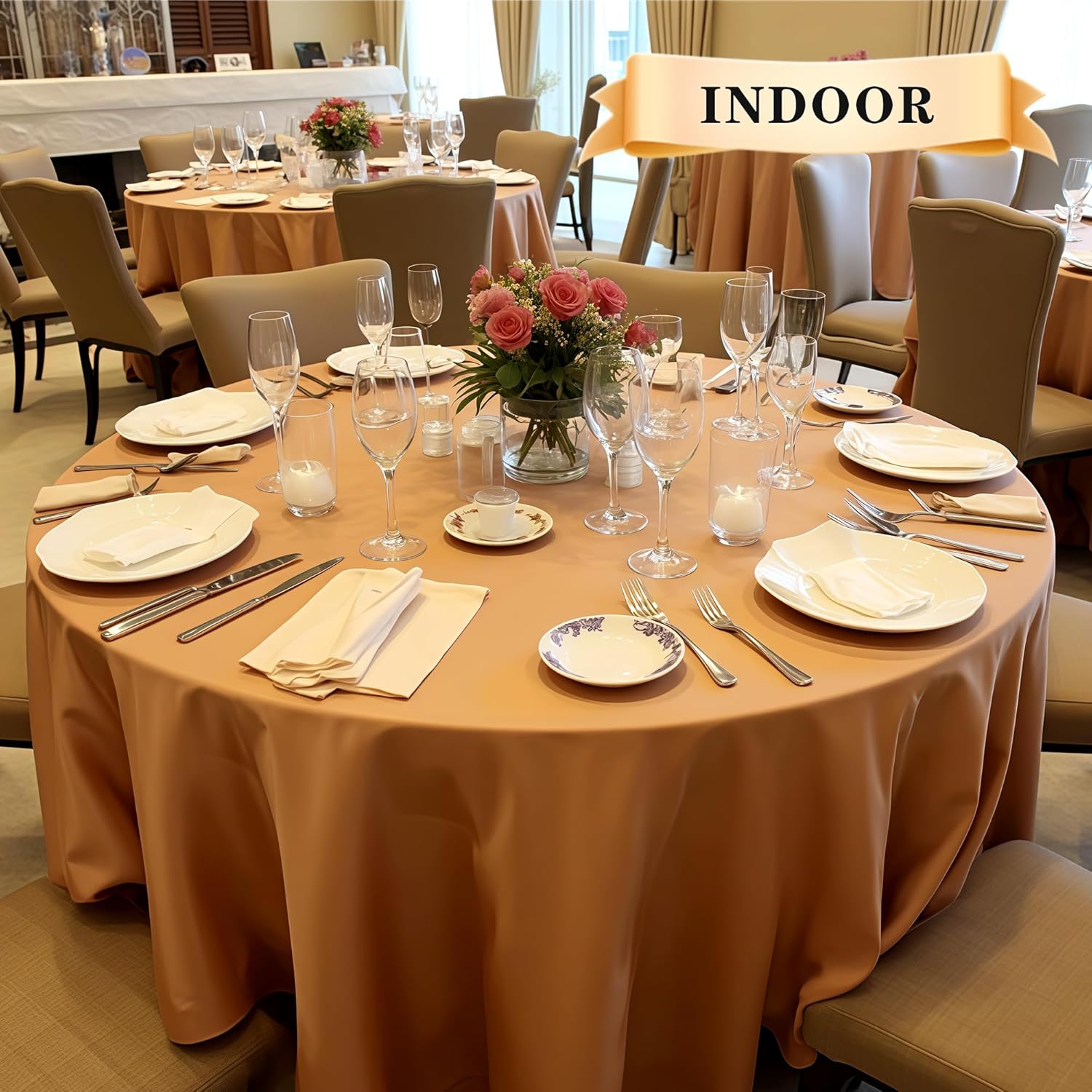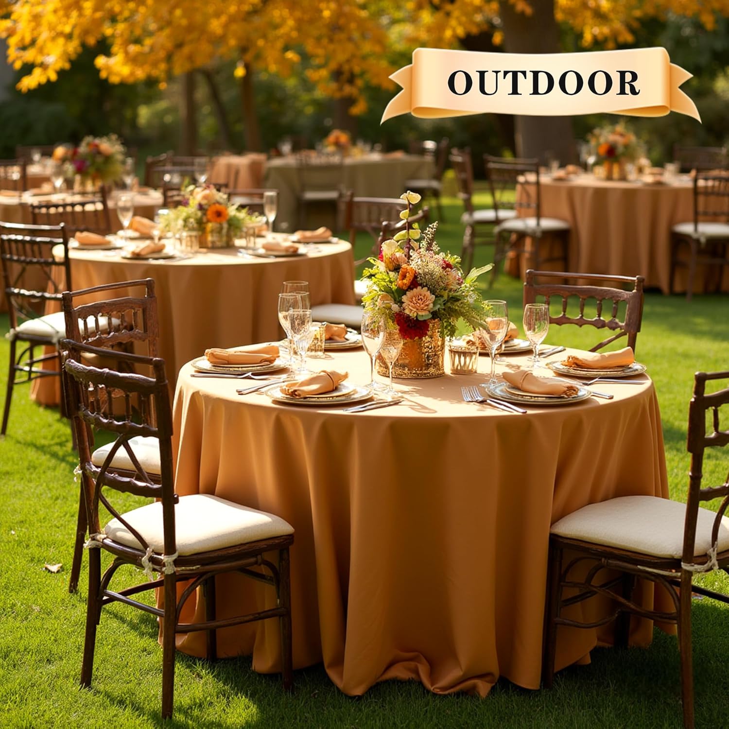 sancua 6 Pack Round Tablecloth 90 Inch, Stain and Wrinkle Resistant Fall Table Cloth - Washable Polyester Decorative Fabric Table Cover for Dining, Thanksgiving Parties and Camping, Bronze