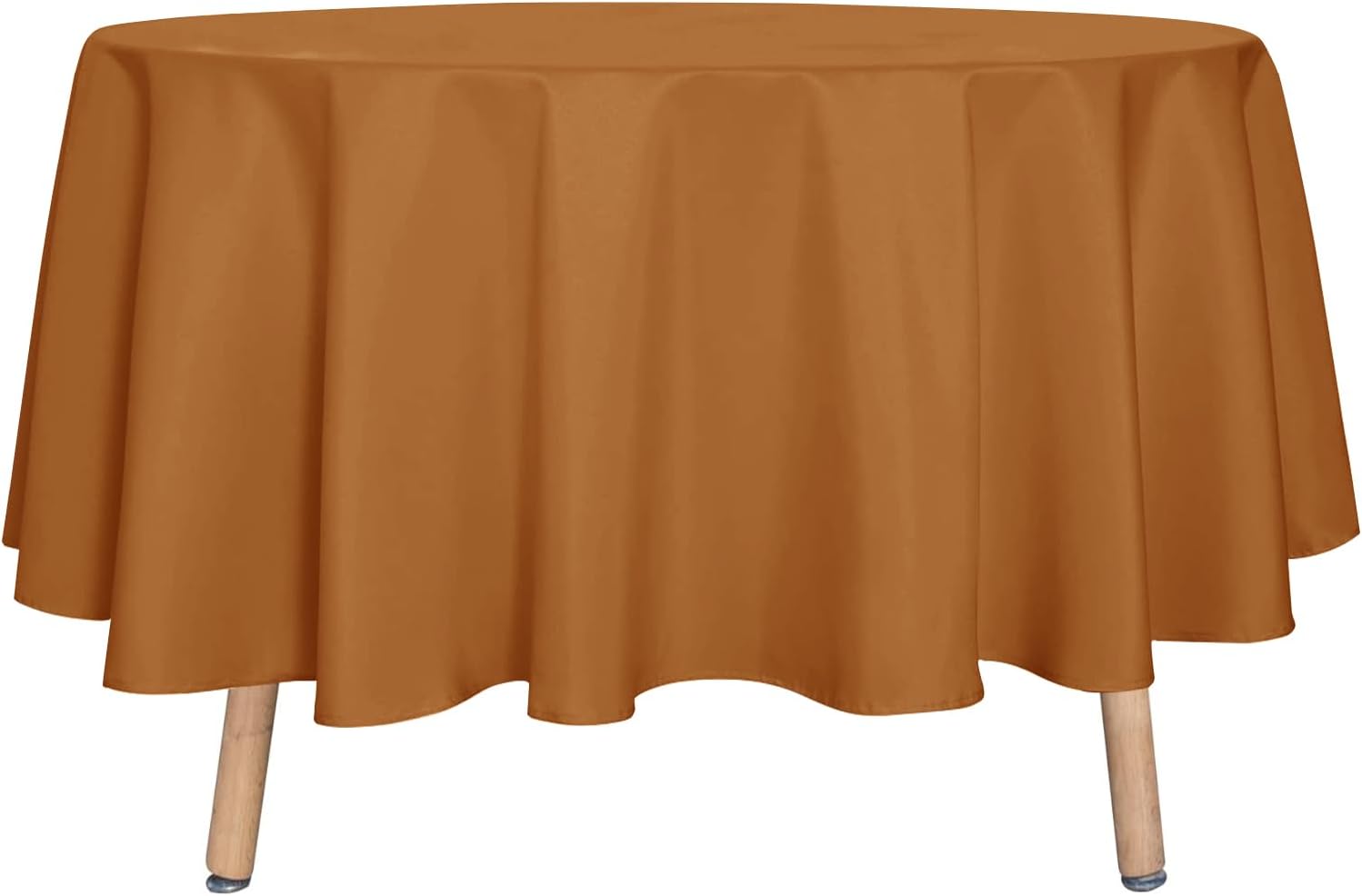 sancua Round Tablecloth 90 Inch - Water Resistant Spill Proof Washable Polyester Fall Table Cloth Decorative Fabric Table Cover for Dining Tables, Thanksgiving Parties and Camping, Bronze