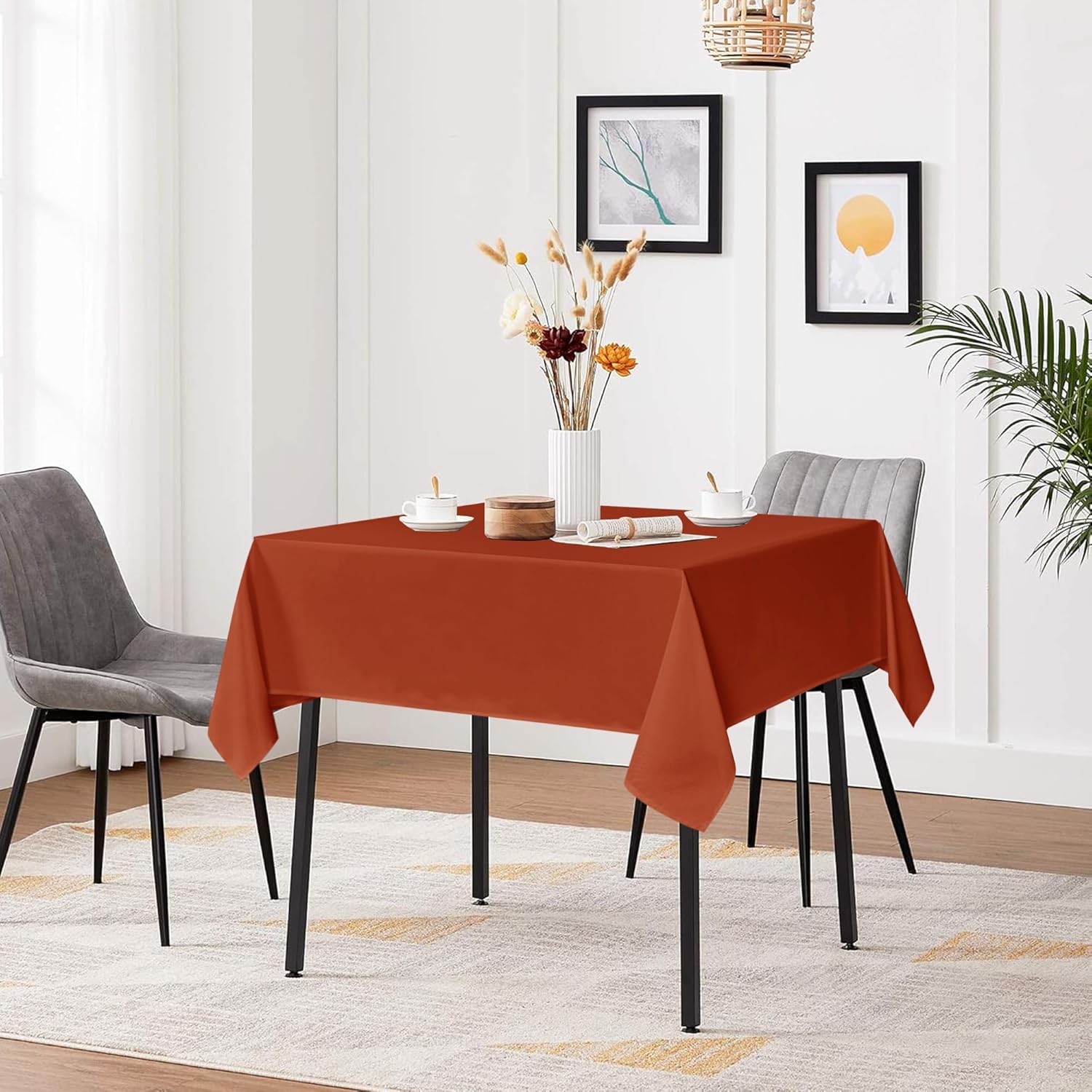sancua Square Tablecloths 85x85 Inch Rust - Fabric Fall Table Cloth for Square or Round Tables, Burnt Orange Washable Polyester Table Cover for Thanksgiving, Holiday Party, Decorative Display Tables