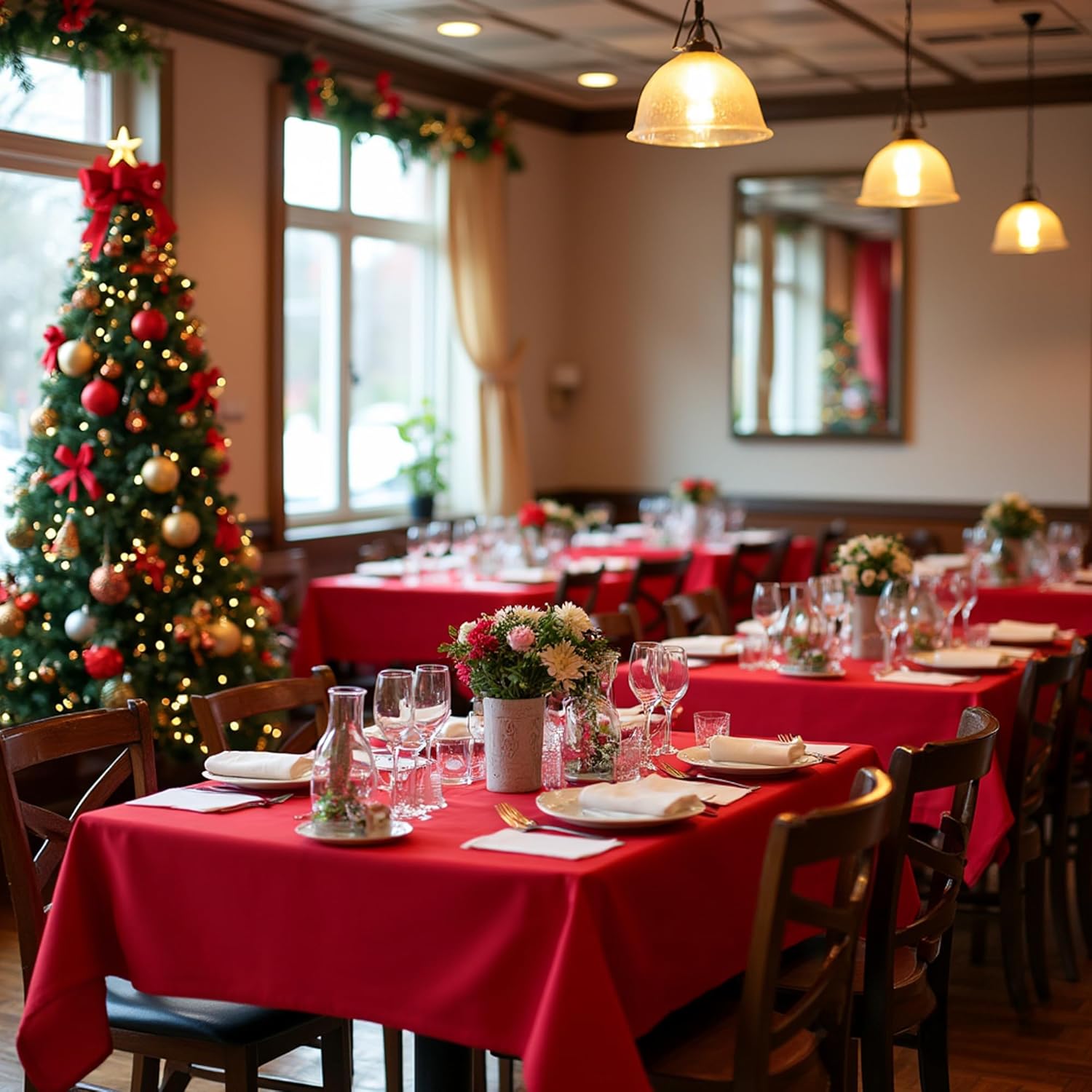 sancua Christmas Red Square Tablecloths 60x60 Inch, 2 Pack - Fabric Table Cloth for Square or Round Tables, Washable Polyester Table Cover for Dinner, Holiday Party, Decorative Display Tables